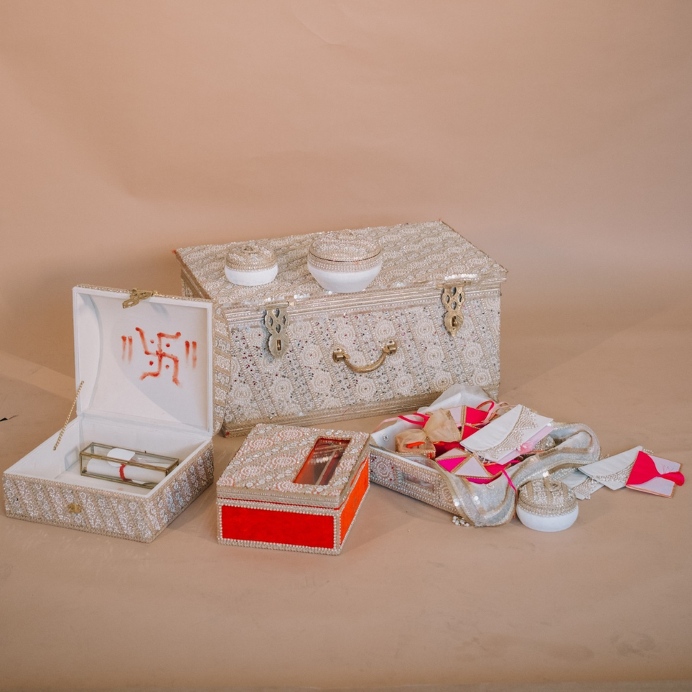 At Pataaree, we believe weddings are an intimate blend of memories, rituals, and personal stories. Our handcrafted trousseau pieces, ceremony essentials, and customised gifting solutions are created to honour these moments with elegance.