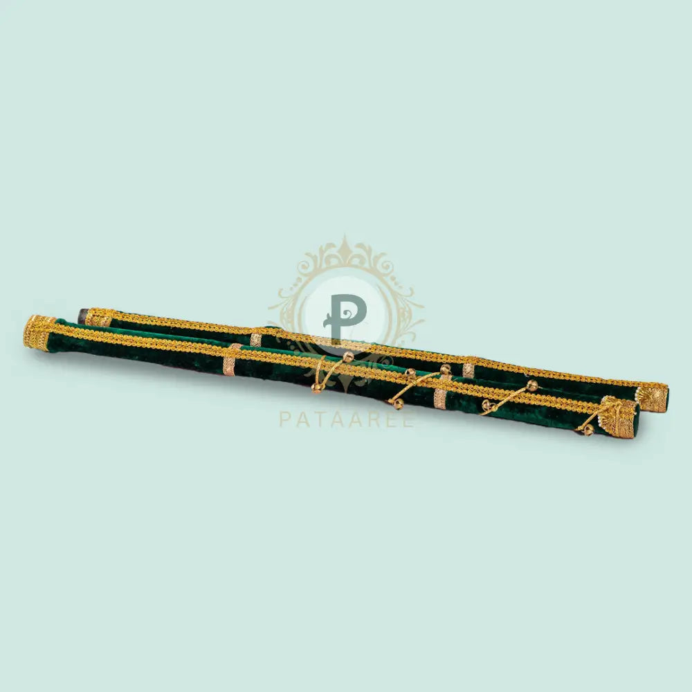 Elevate your Jaago night with the enchanting Bottle Green Velvet Jaago Danda, crafted in luxurious velvet fabric and accentuated with golden gota work and classic ghungroos. This vibrant ceremonial piece turns every dance into a spectacle, capturing the rhythm and spirit of Punjabi tradition. Designed to be the center of attention, it’s perfect for those who want their celebrations to be both cultural and captivating.