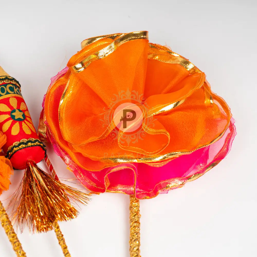 Celebrate an Eco-Friendly Diwali with our Firecracker Bunch, made from fabric and gota, featuring 8 handcrafted elements. Perfect for Diwali decor, Diwali gifting, or your 1st Diwali, this sustainable and unique piece adds charm to your home decor while honoring tradition.