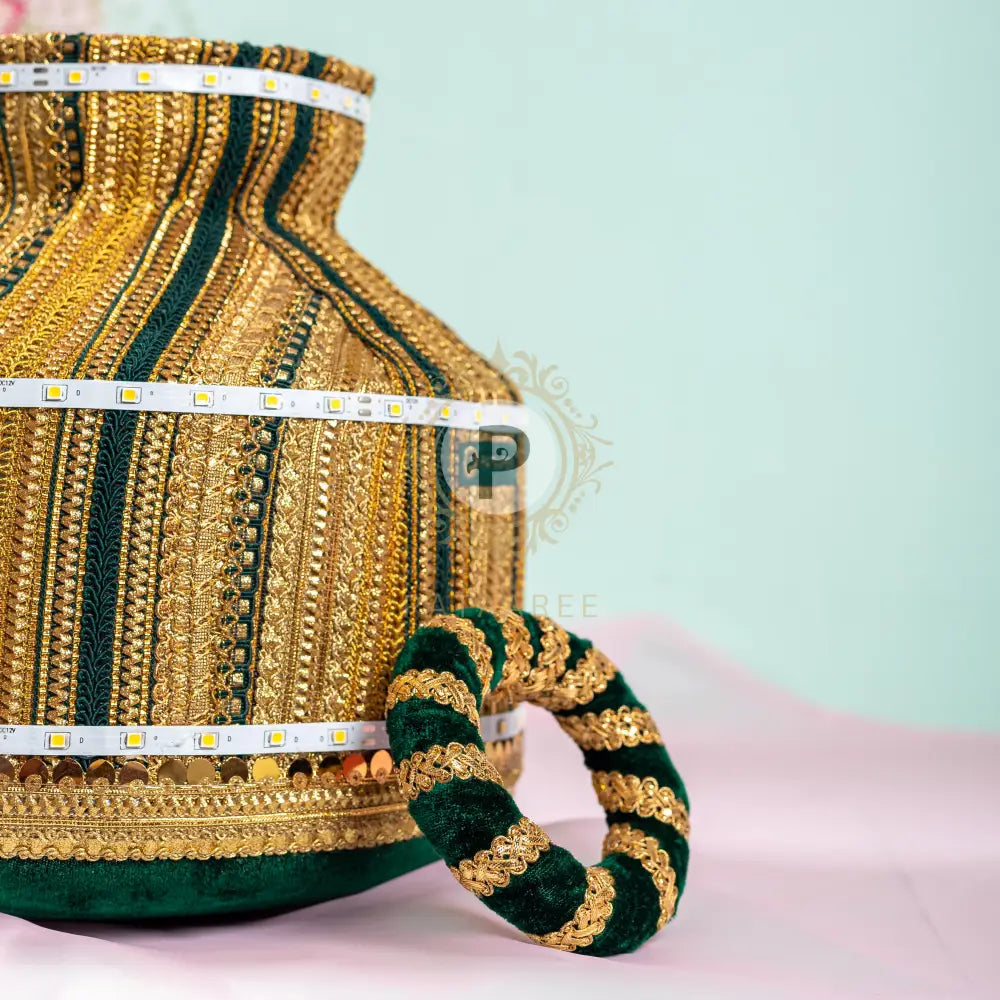 Green & Gold Satrangi Jaago Matka (with LED lights)