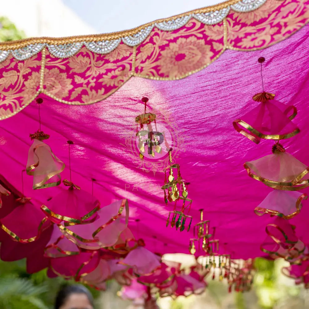 A burst of joy, tradition, and celebration—our Hot Pink Brocade and Silk Bridal Chadar adds a bold statement to your Haldi ceremony. While the bride or groom awaits the shower of blessings in the form of ubtan or mandha, this vibrant chadar, rich in hot pink hues and finished with gold-edged tissue tassels, brings out the festivity and glamour of the moment. It’s not just an accessory—it's a mood, a celebration of love, and an unforgettable detail in your wedding story. Let Pataaree be part of your radiant Haldi memories.