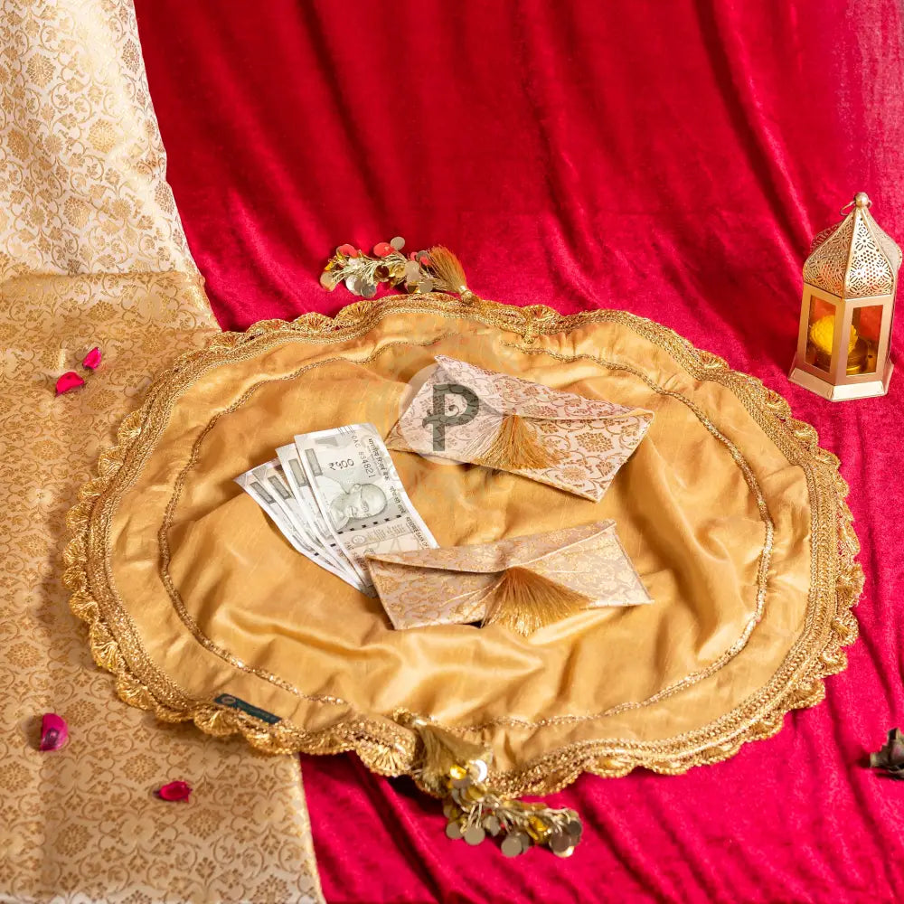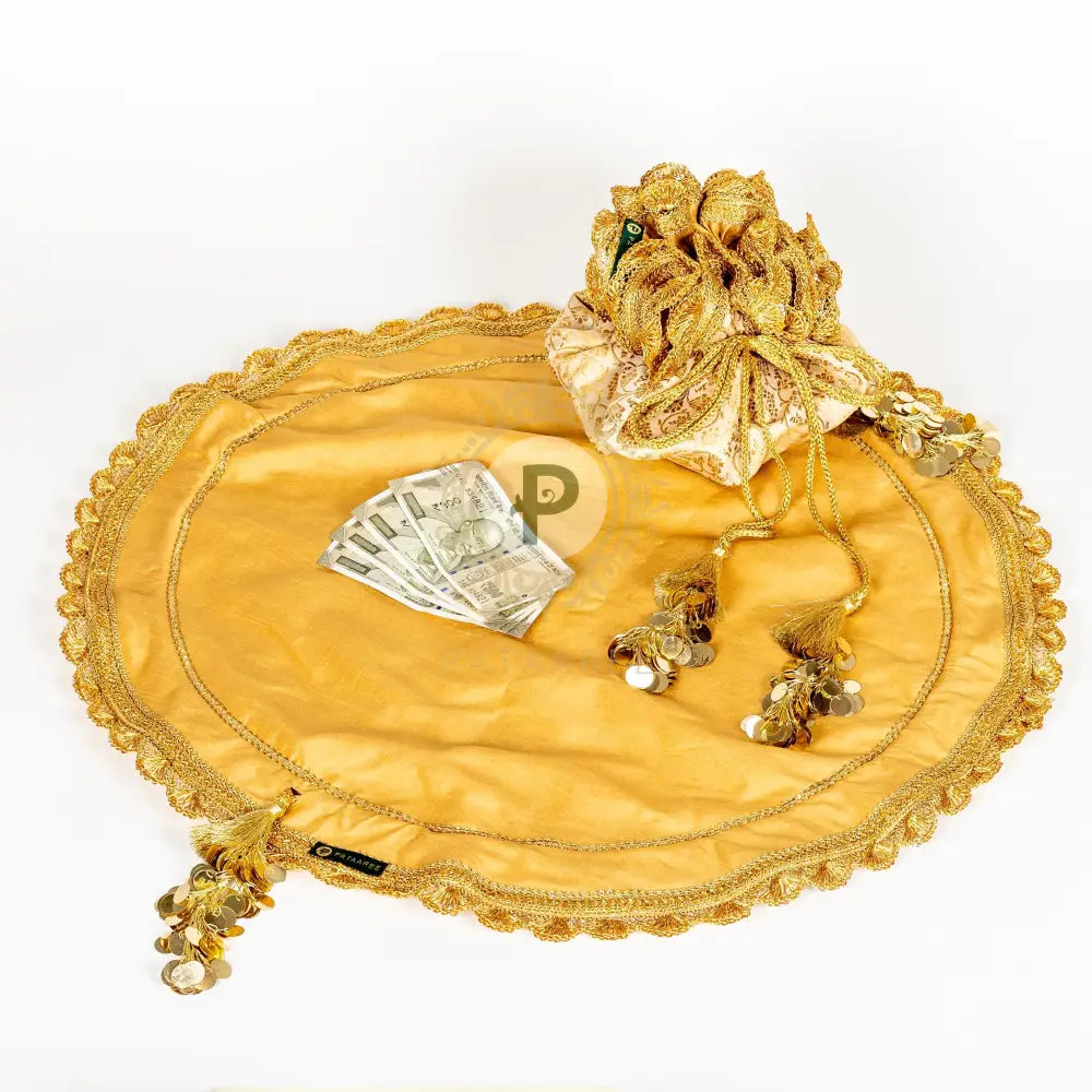 After the ceremony, each cover converts into a stylish potli with drawstrings, blending tradition with contemporary style. Perfect for celebrating and cherishing your special moments.
