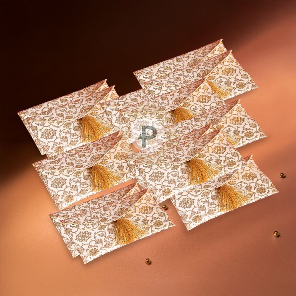 Ivory Brocade Shagun Envelope – Set of 20