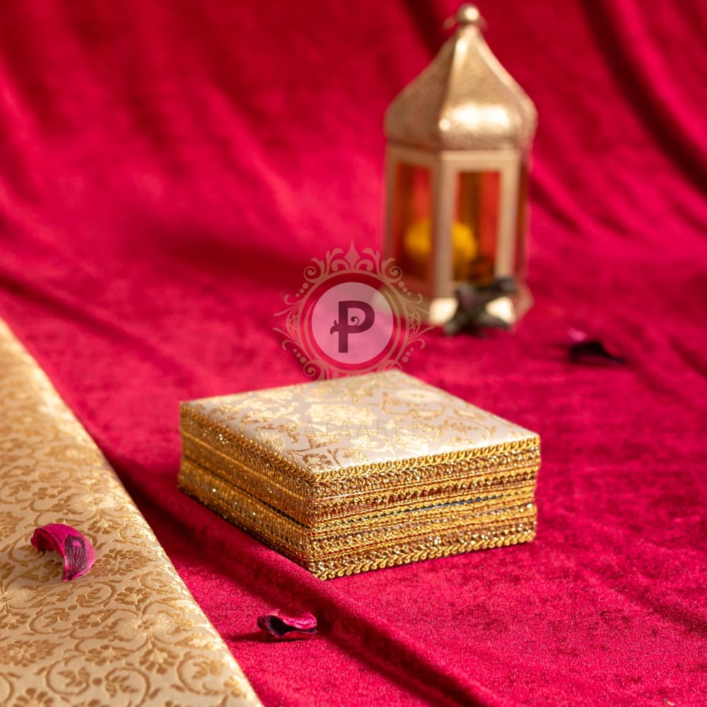 Unveil traditional elegance with our Ivory & Gold Brocade Single Kada Box, exquisitely designed to cradle a single kada or bangle in regal luxury. Crafted from premium brocade fabric with shimmering gold trims, this box is perfect for Shagun ceremonies, bridal gifting, or preserving heirloom jewelry. The intricate pattern and timeless craftsmanship reflect the richness of Indian heritage, making it a beautiful blend of culture and sophistication. A keepsake worth cherishing, this box adds a royal touch to every celebration.