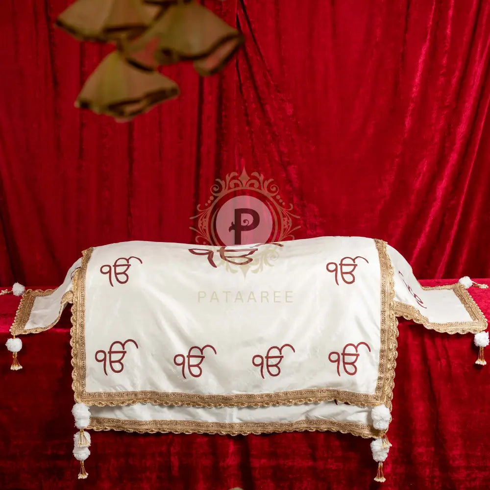Ivory Silk Rumala Sahib Set with Screen Printed Ek Onkar