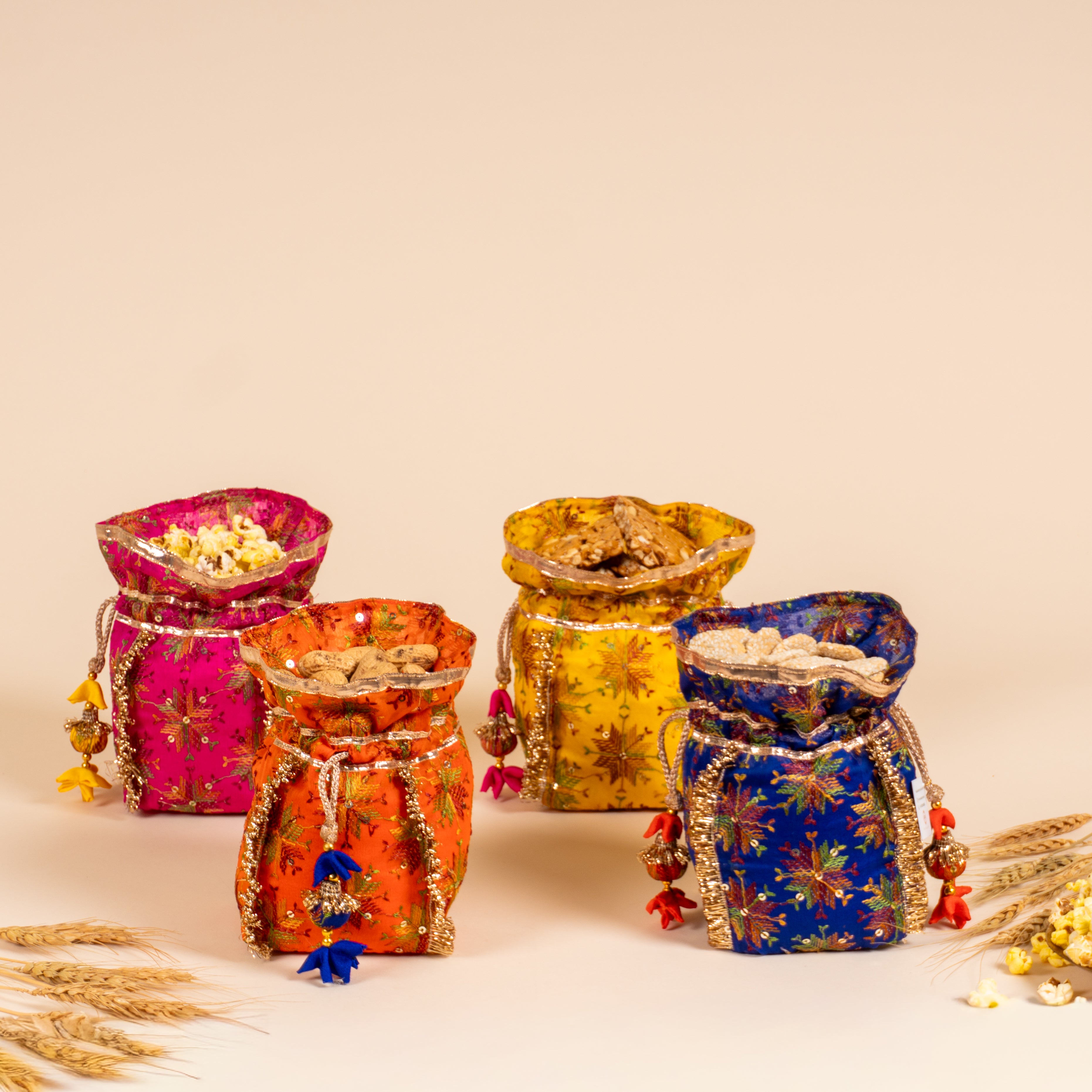 Lohri Assorted Phulkari Potlis (Set of 4)