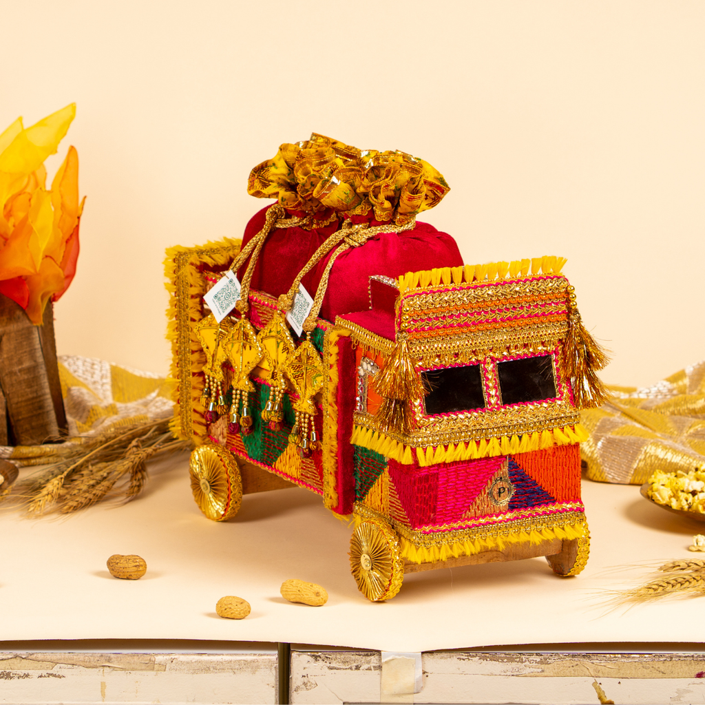 Make your lohri gifting unforgettable with these vibrant handcrafted truck platters that add a charm of punjab folk culture to your festive setup. Complete with 2 velvet potlis, this set makes your favours feel personal and intentional.