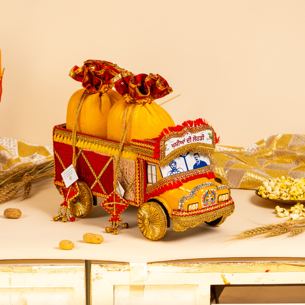 Make your lohri gifting unforgettable with these vibrant handcrafted truck platters that add a charm of punjab folk culture to your festive setup. Complete with 2 velvet potlis, this set makes your favours feel personal and intentional.