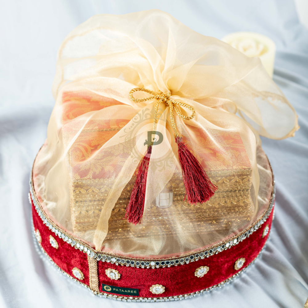 Material: Base Material MDF wood (Medium Density Fibreboard) covered with velvet fabric and gota work.