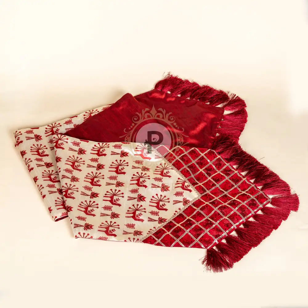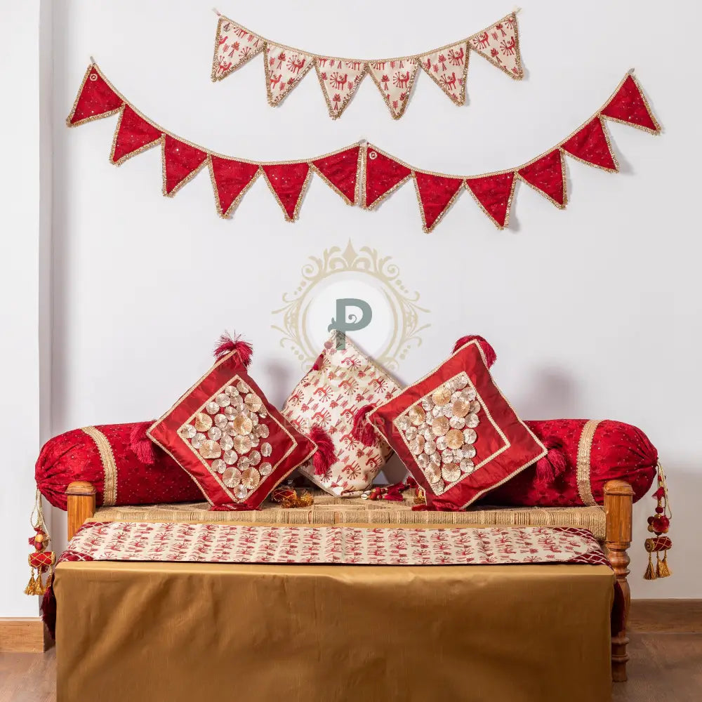 Maroon Phulkari Set (Cushion Covers with Runner & Buntings)