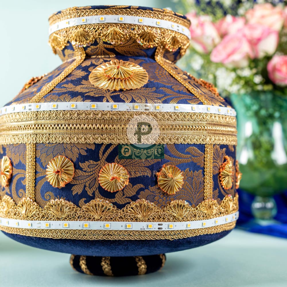 Navy Blue & Gold Brocade Jaago Matka (with LED Lights)