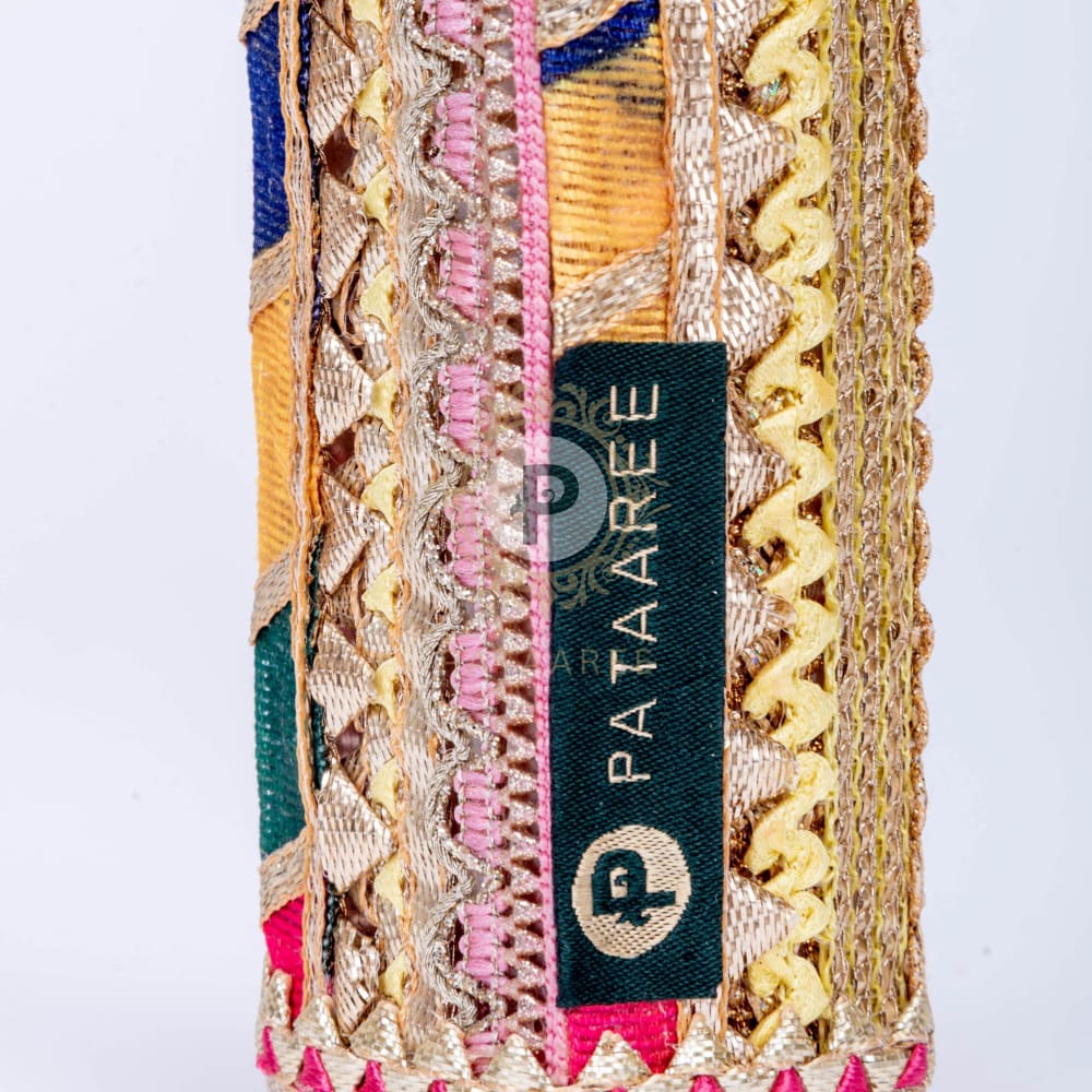 Material: Base Material plastic and covered Satrangi trims in bubblegum tones with pink velvet.