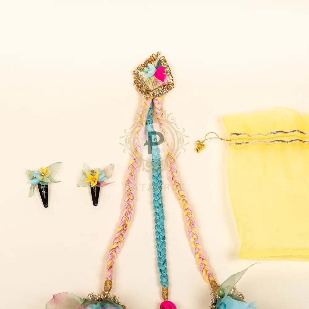 Set Includes : 1 Adult parandi (37") with hair clips & 1 Kid parandi (24") with hair clips comes with tissue cover potlis.
