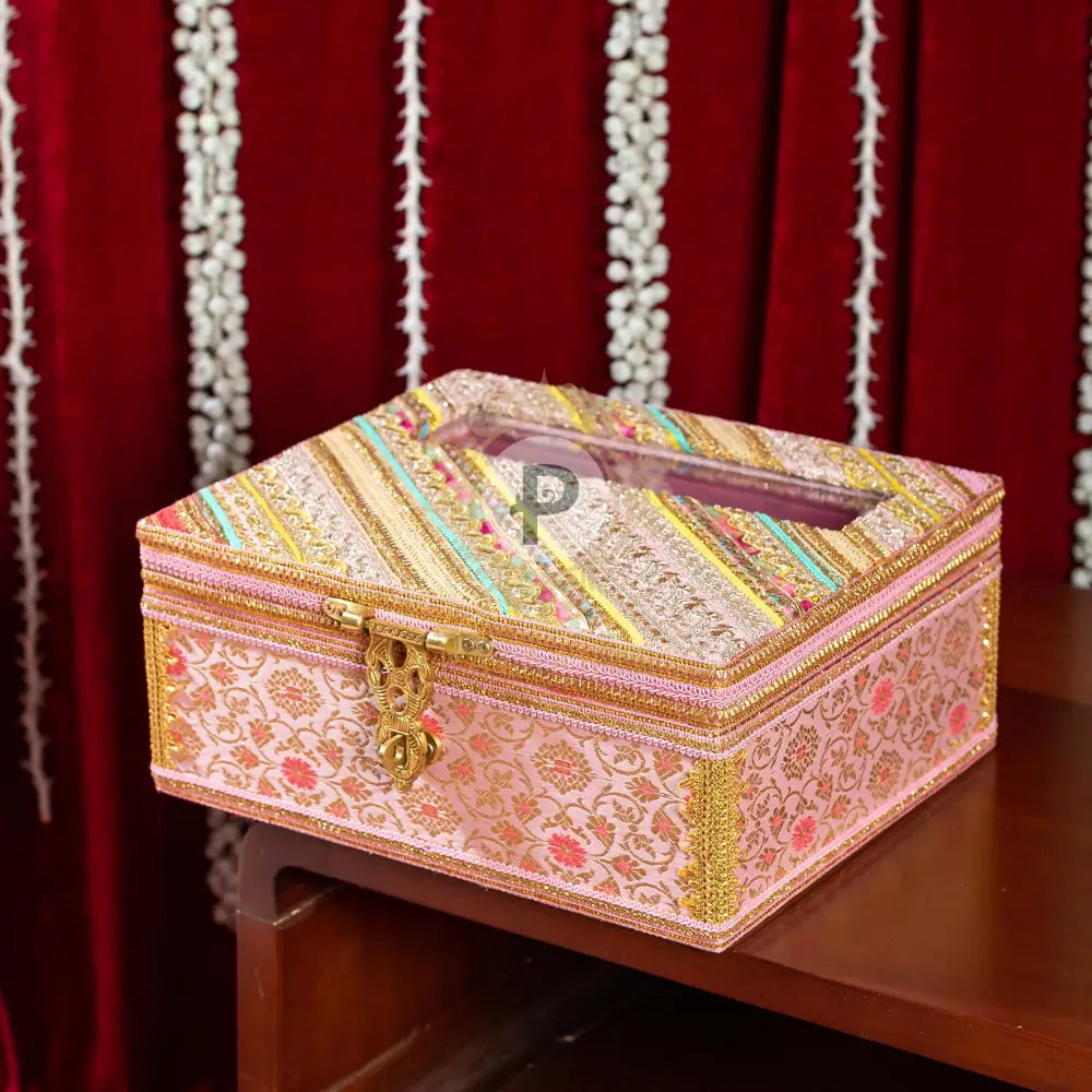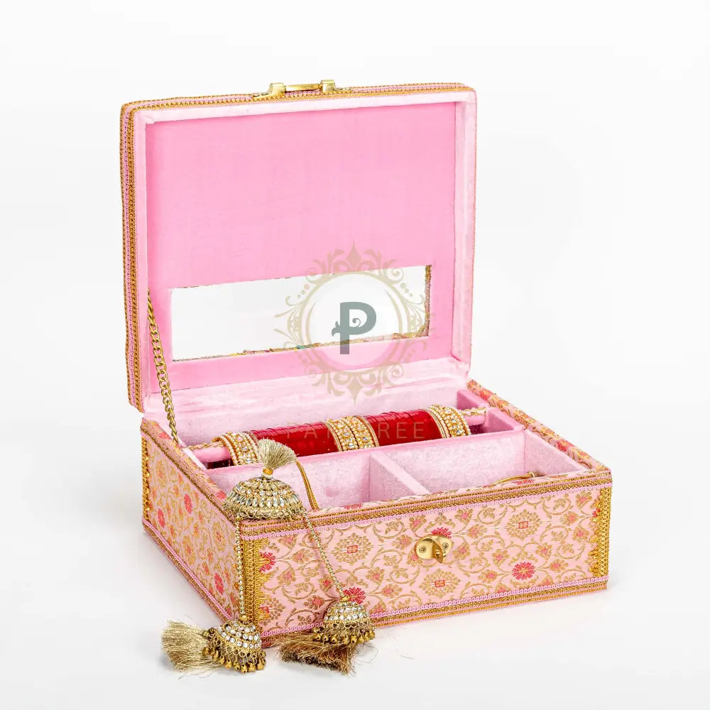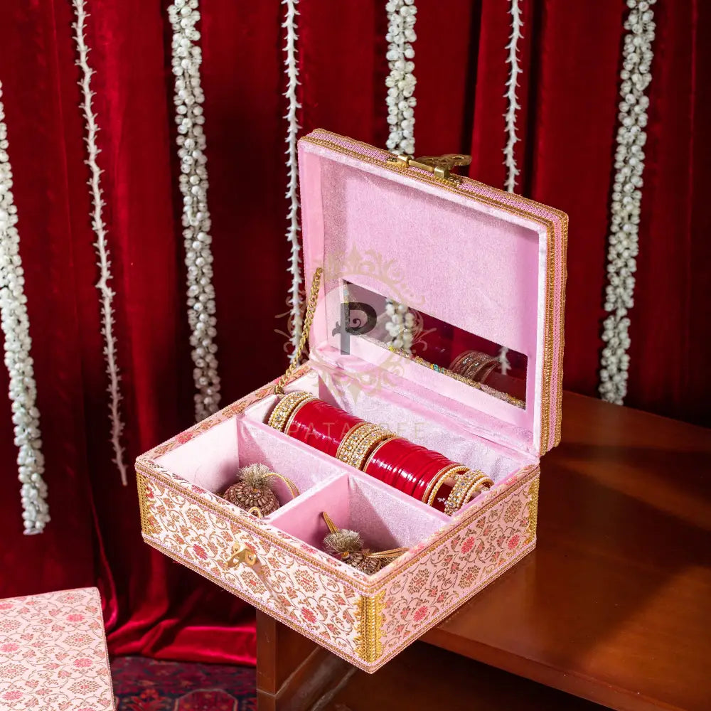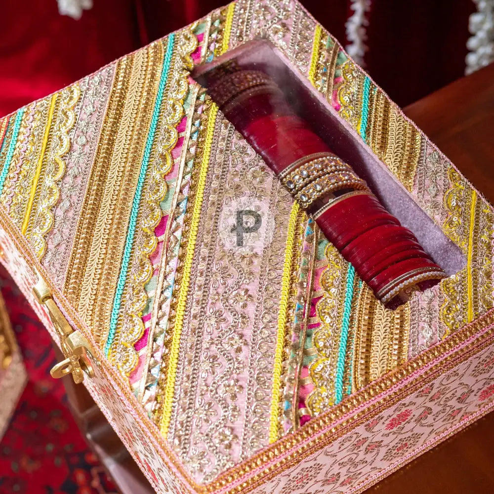 Pastel Pink Brocade Chura Kaleera Box with Satrangi Top