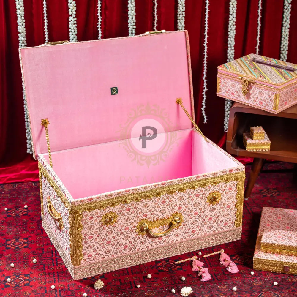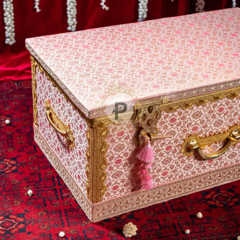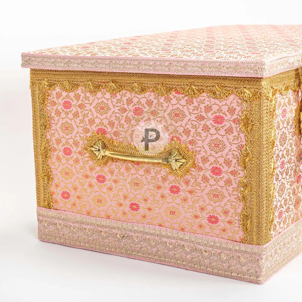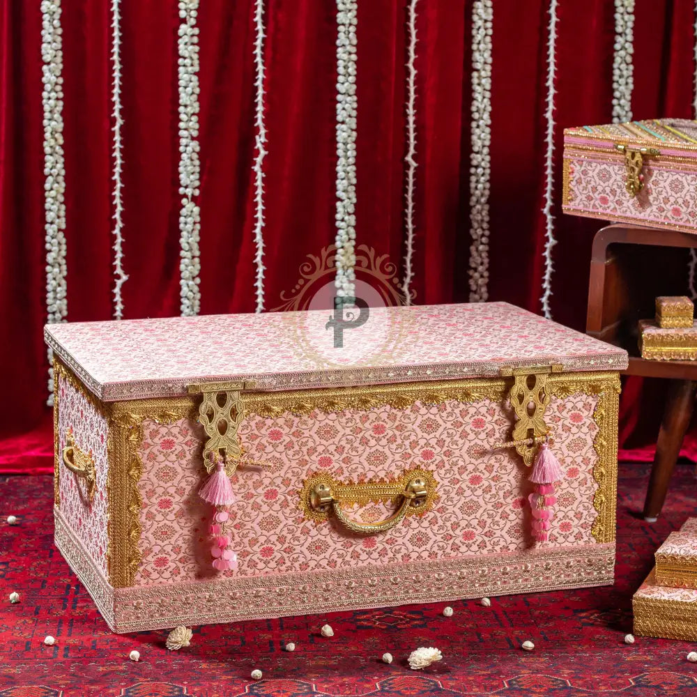 Pastel Pink Brocade Trousseau Trunk
