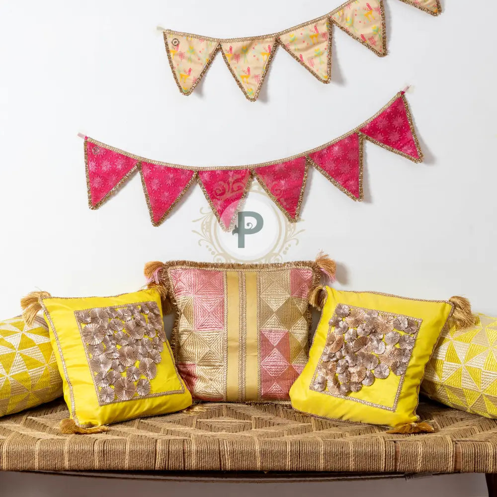 Pastel Phulkari Set (Cushion Covers with Runner & Buntings)