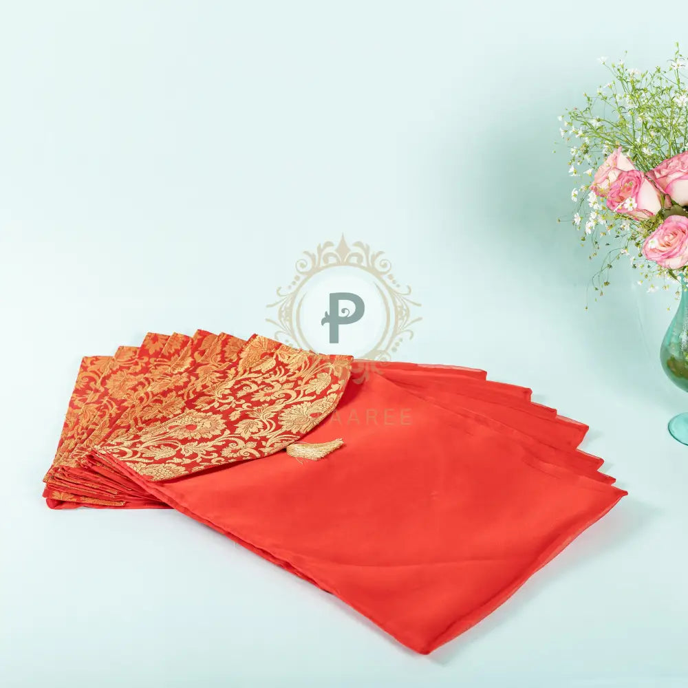 Preserve your precious trousseau collection of designer clothes in our elegant and graceful red brocade suit covers. With red and gold of the brocade and matching silk fabric stitched at the back makes these suit covers ideal for storing and presenting your lehengas, anarkalis, shawls, etc and are a thoughtful gift for your friends and relatives. Invest in stylish and sophisticated suit covers, call us.
