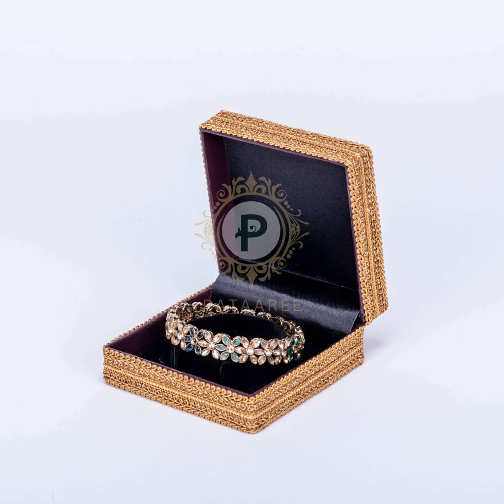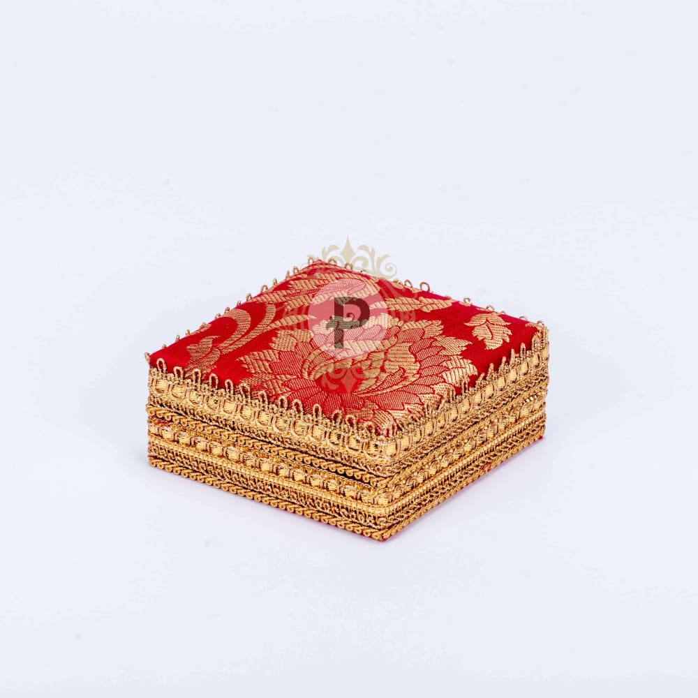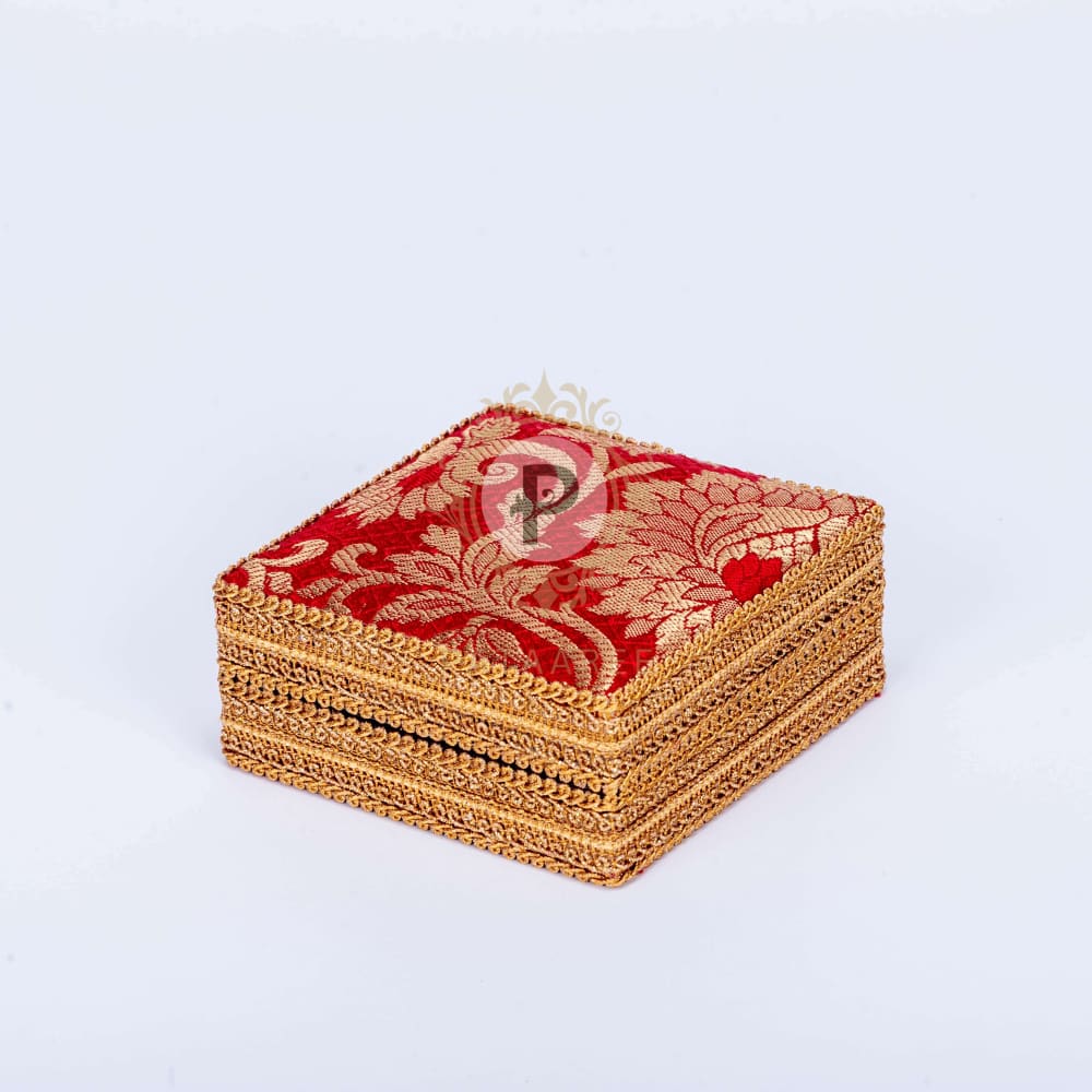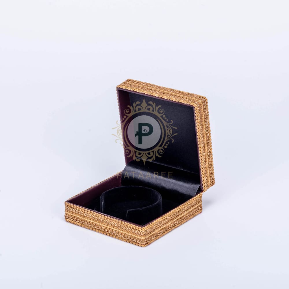 Place your precious gold kada for the groom or the bride in our handmade in house designed red brocade with gold trims single kada box.