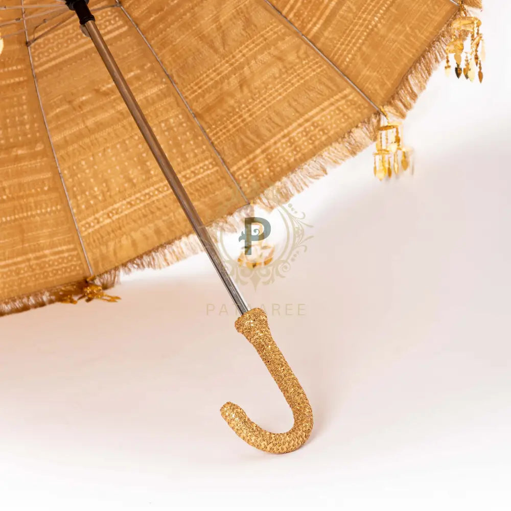 When it's raining love, when there are showers of blessings, when good luck pours, then our advice for the brides is to make an entry with style carrying our stunning bridal umbrellas. All that glitters is gold, and so is our gold satrangi umbrella with golden kaleeras, a headturner for bridal entry. Book your bridal umbrella here.