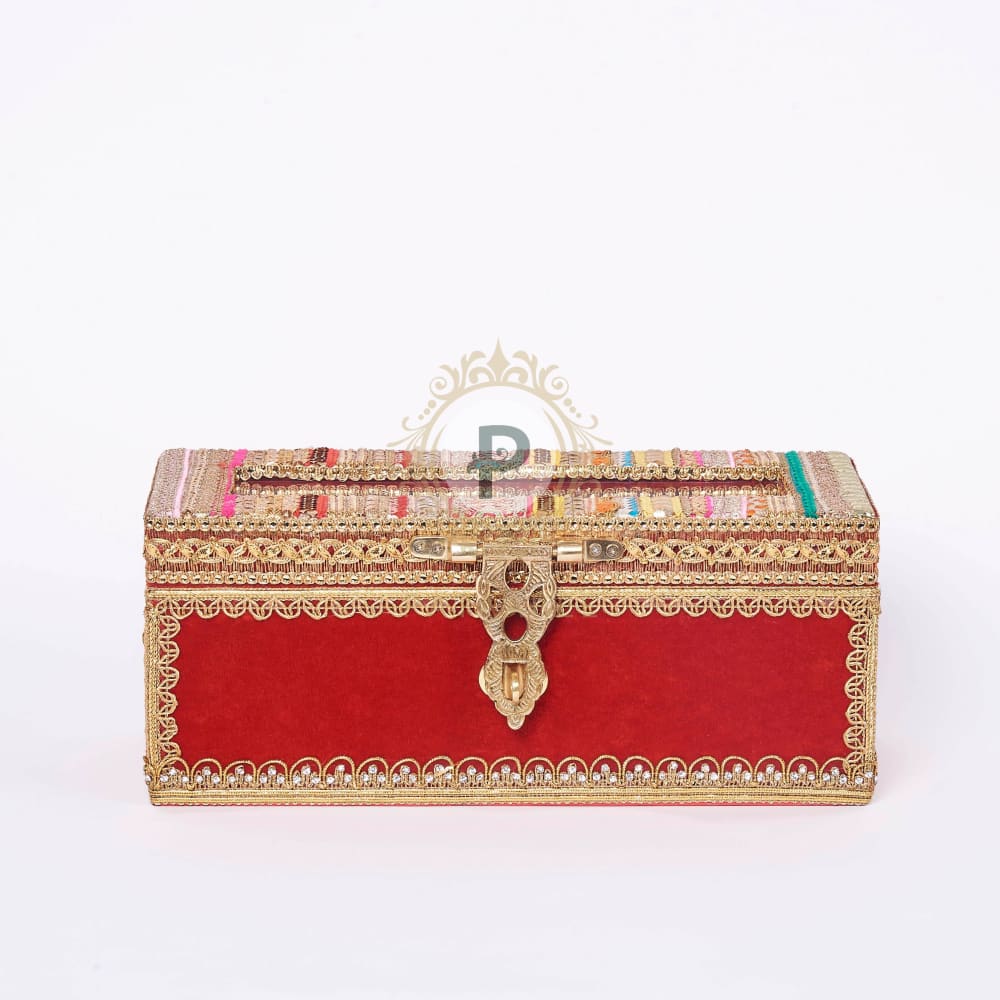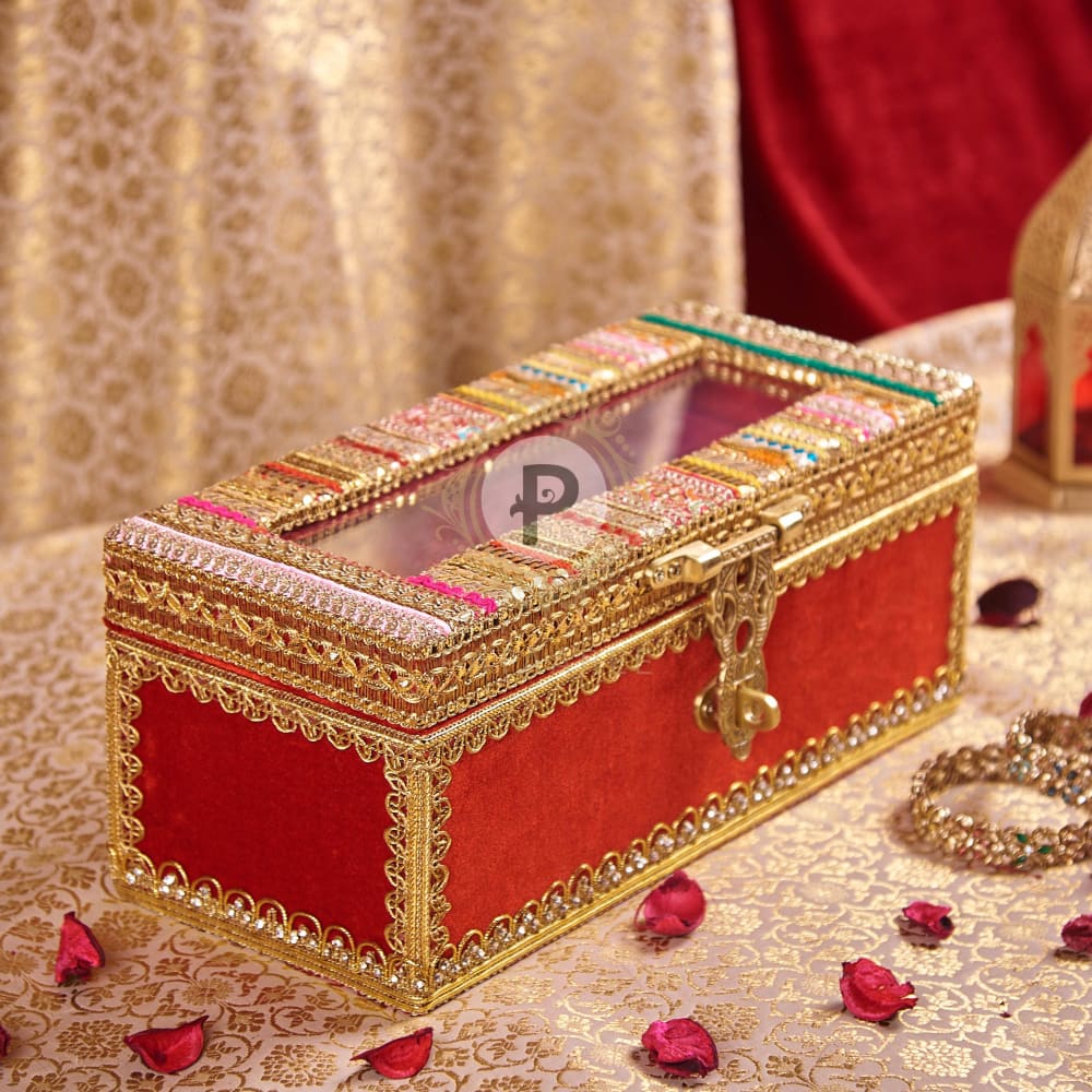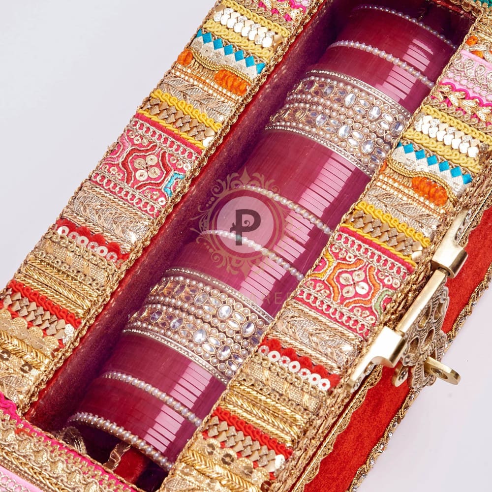 Lending the chura ceremony a distinct look is the satrangi full chura box designed with red velvet base and satrangi top