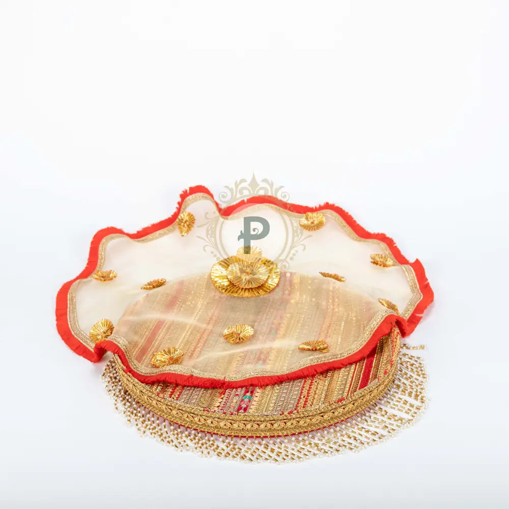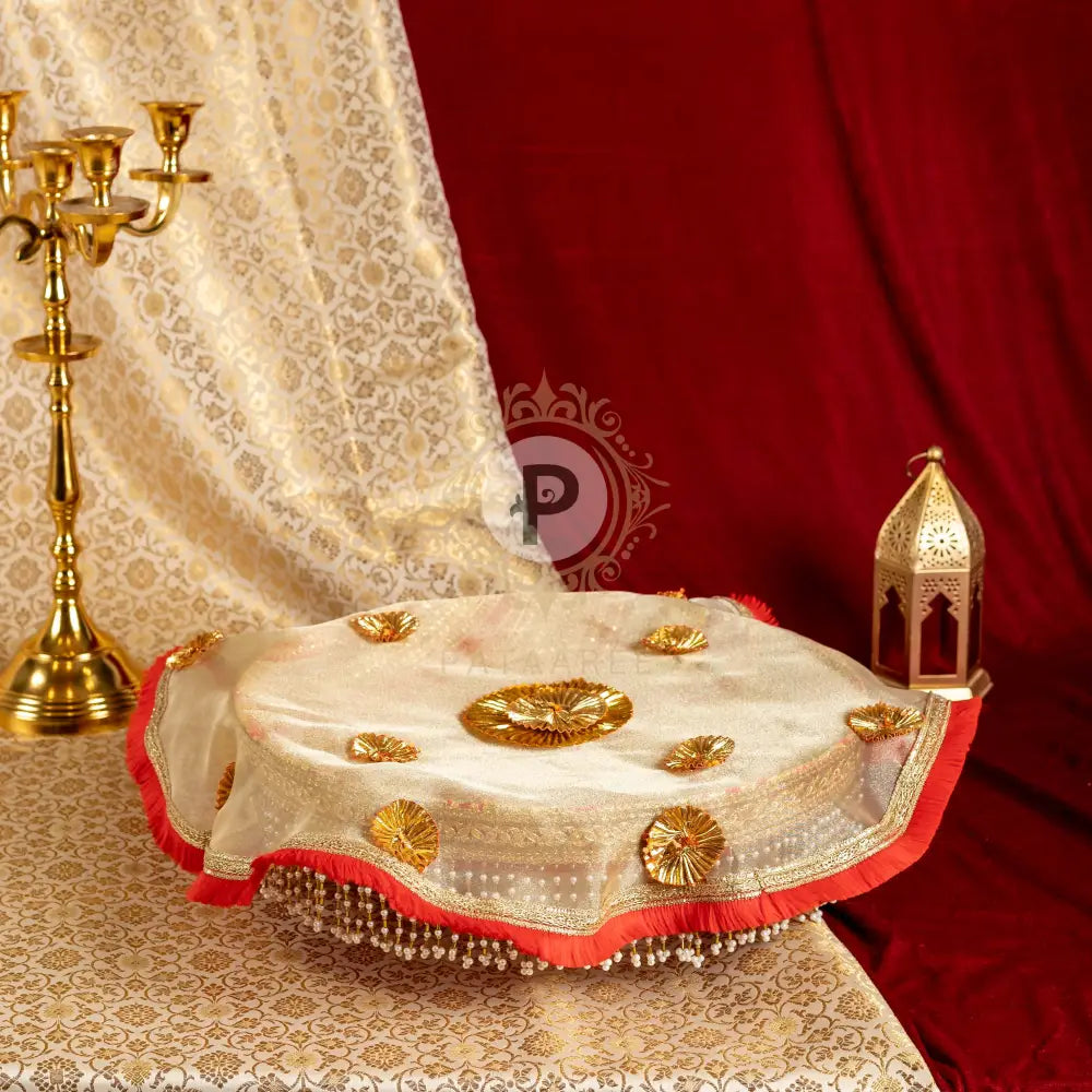 Satrangi Thaal and Cover with Pearl Hanging Trim