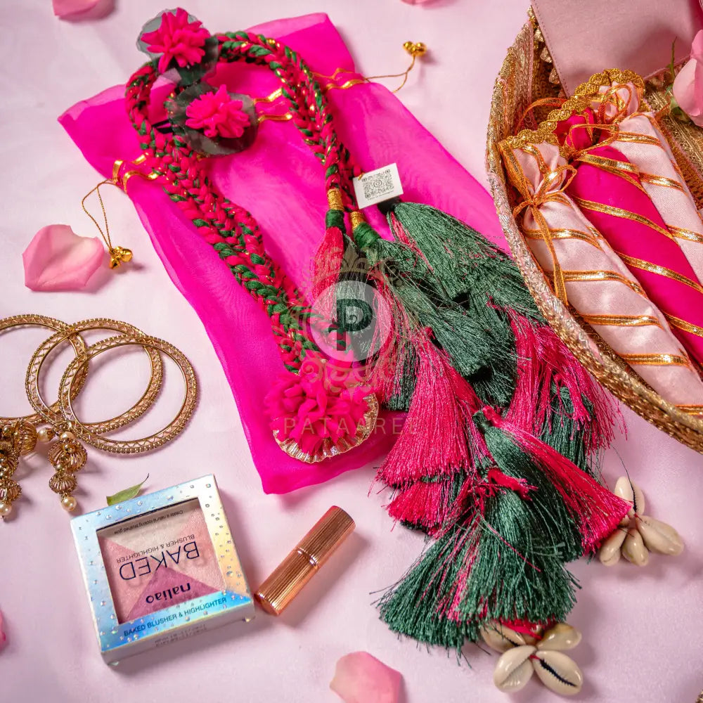 1 Pink and Green Parandi with Hot Pink Organza Potli