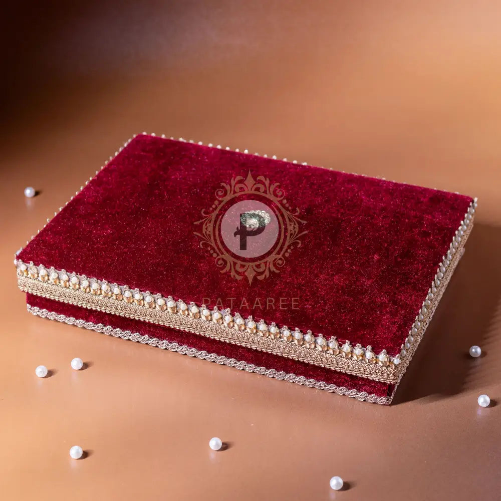Matching with the bhaji box is the barfi box, shedding its soggy cardboard image and slipping into the maroon and floral avatar of the Zehra collection. The barfi box is an integral part of shagun and wedding ceremonies, and makes for the perfect sweet gift box to go along with wedding invites or gifting at the wedding.