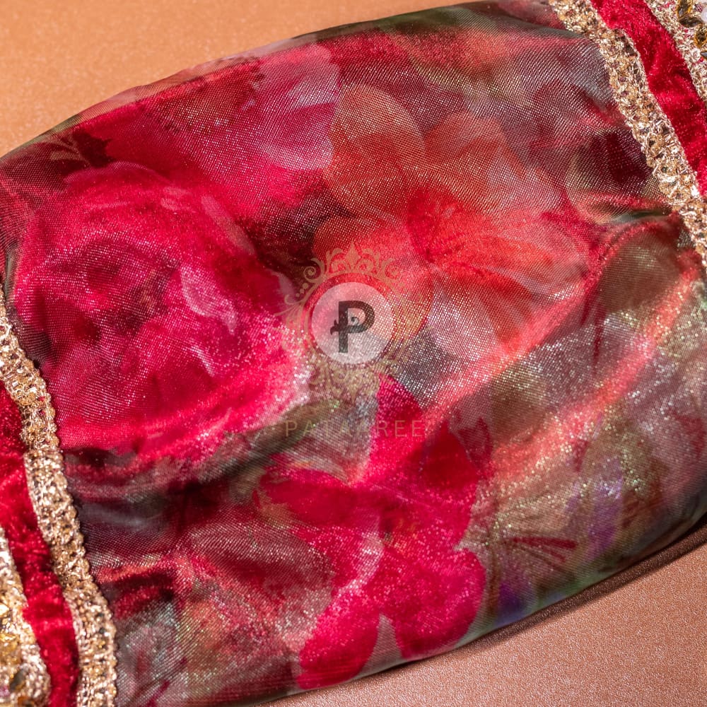 Material: Maroon velvet and floral tissue fabric with matching gota work and elastic.