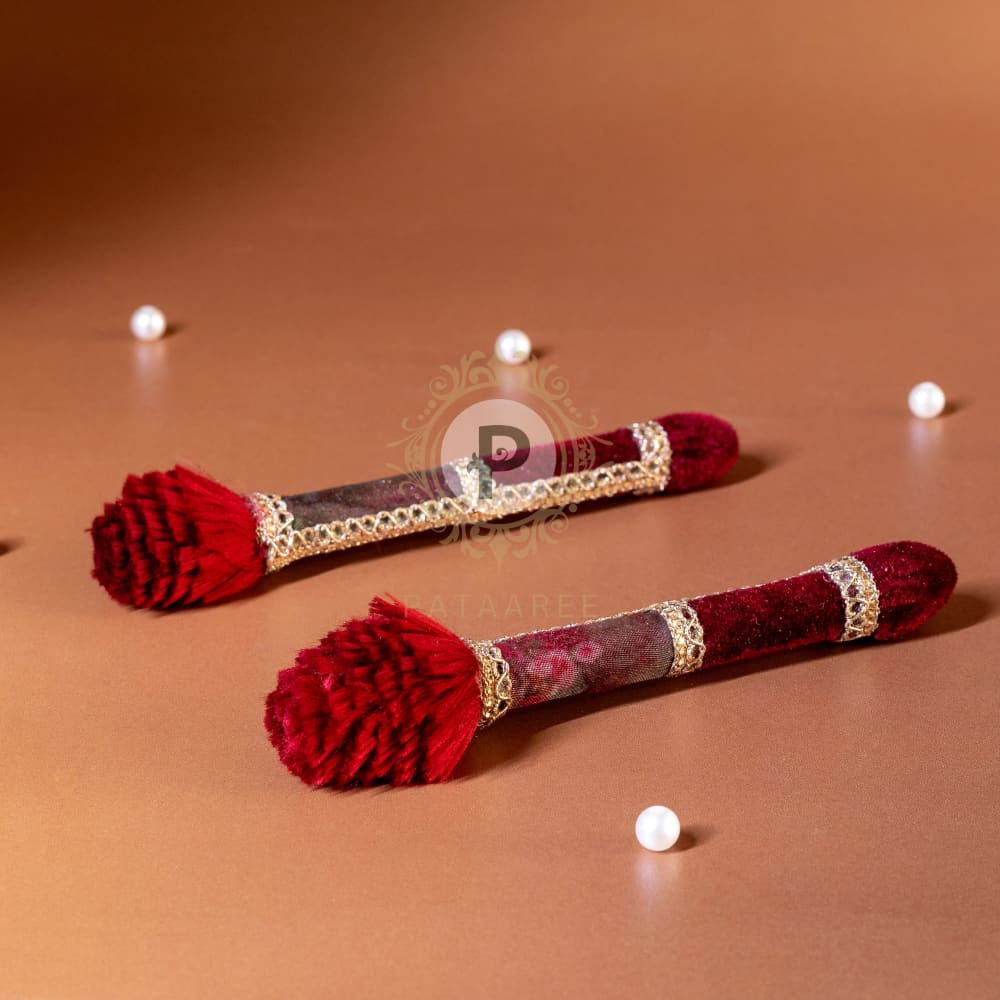 Oil Bottle & Haldi Applicators: An oil bottle and two delicately designed haldi applicators ensure the traditional ritual is carried out with ease and grace.