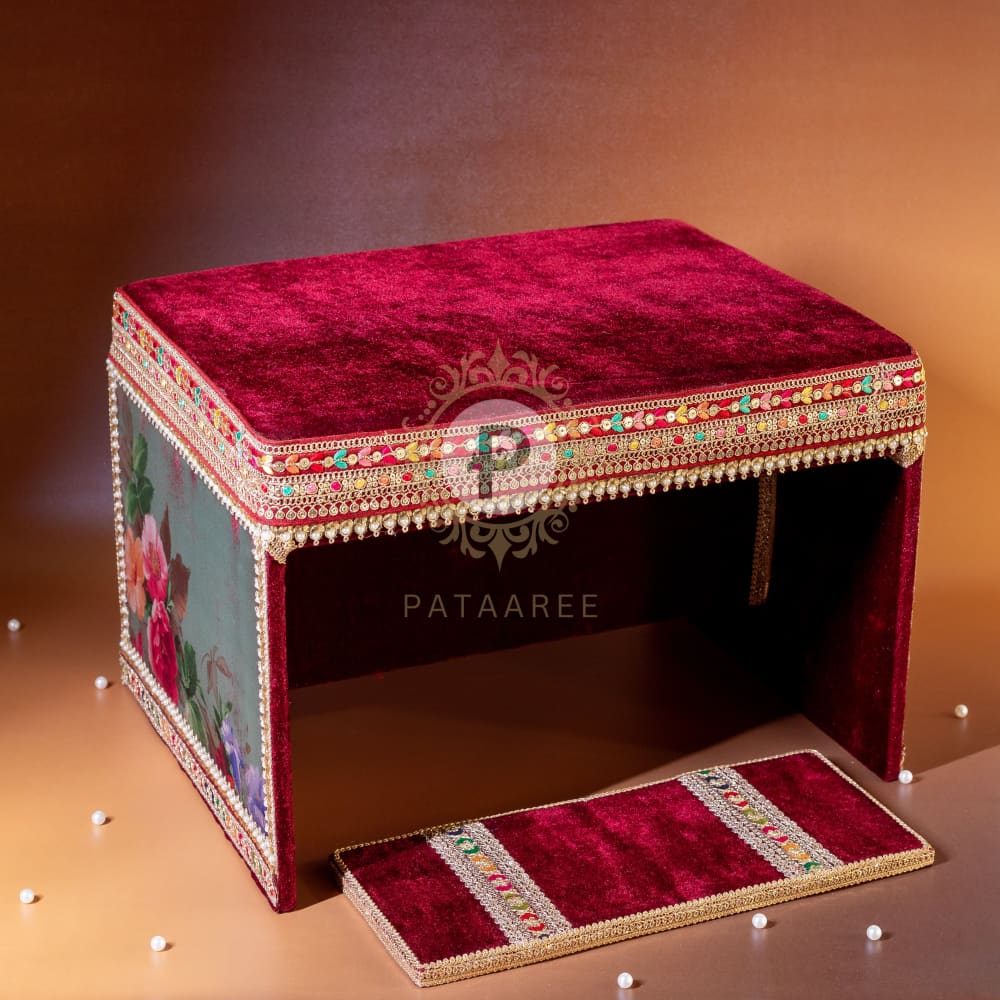 Peedi with Fatti: A beautifully crafted peedi with a fatti, designed for the bride or groom to rest their feet during the ceremony, adding a touch of elegance and comfort.