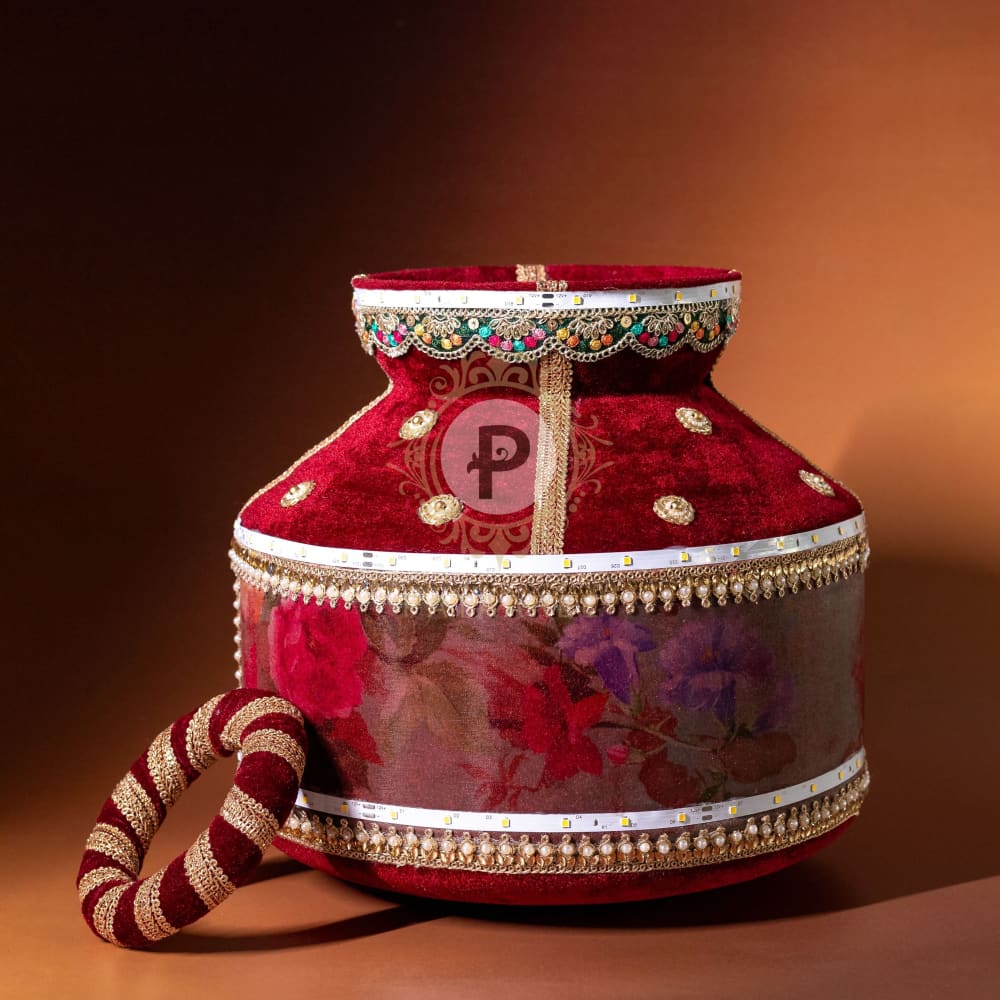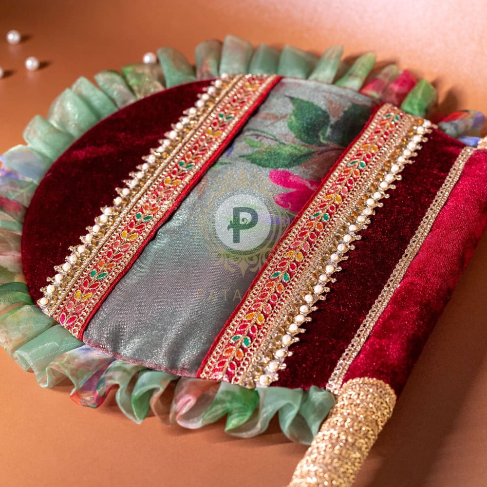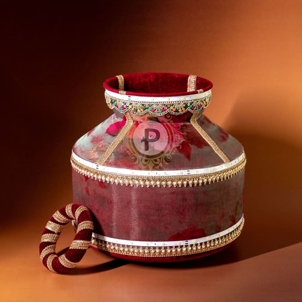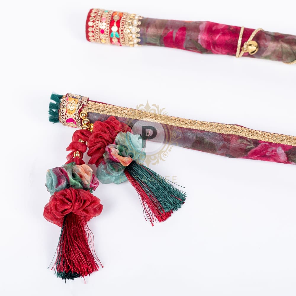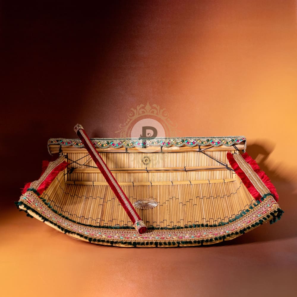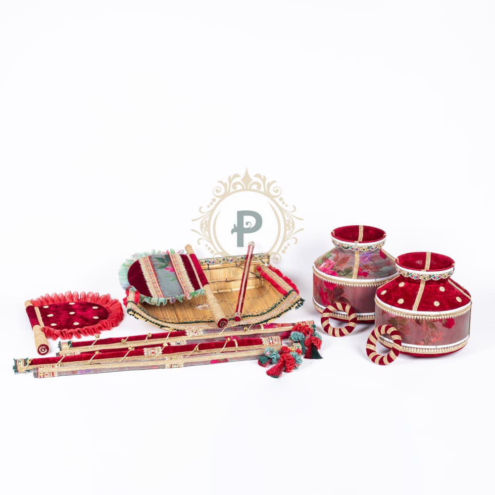 Step into the heart of Punjabi wedding festivities with our Surkh Jaago Set. This exquisite set includes beautifully decorated Jaago Matkas, a festive Danda with playful tassels, a handcrafted Chajj with a matching stick, and two vibrant Pakhi—each piece crafted to enhance the energy of your Jaago night. Designed for brides, grooms, and families who cherish culture, this set ensures your festivities are filled with color, music, and joy. Celebrate heritage in style and let the night shine bright! . Whether it's dancing under the stars or leading a lively procession, this set brings an authentic touch to your wedding festivities!