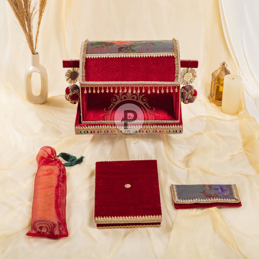 Celebration Surkh Palki Sahe Chithi Set with Screen Printed Scroll