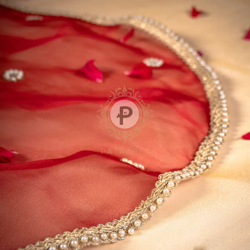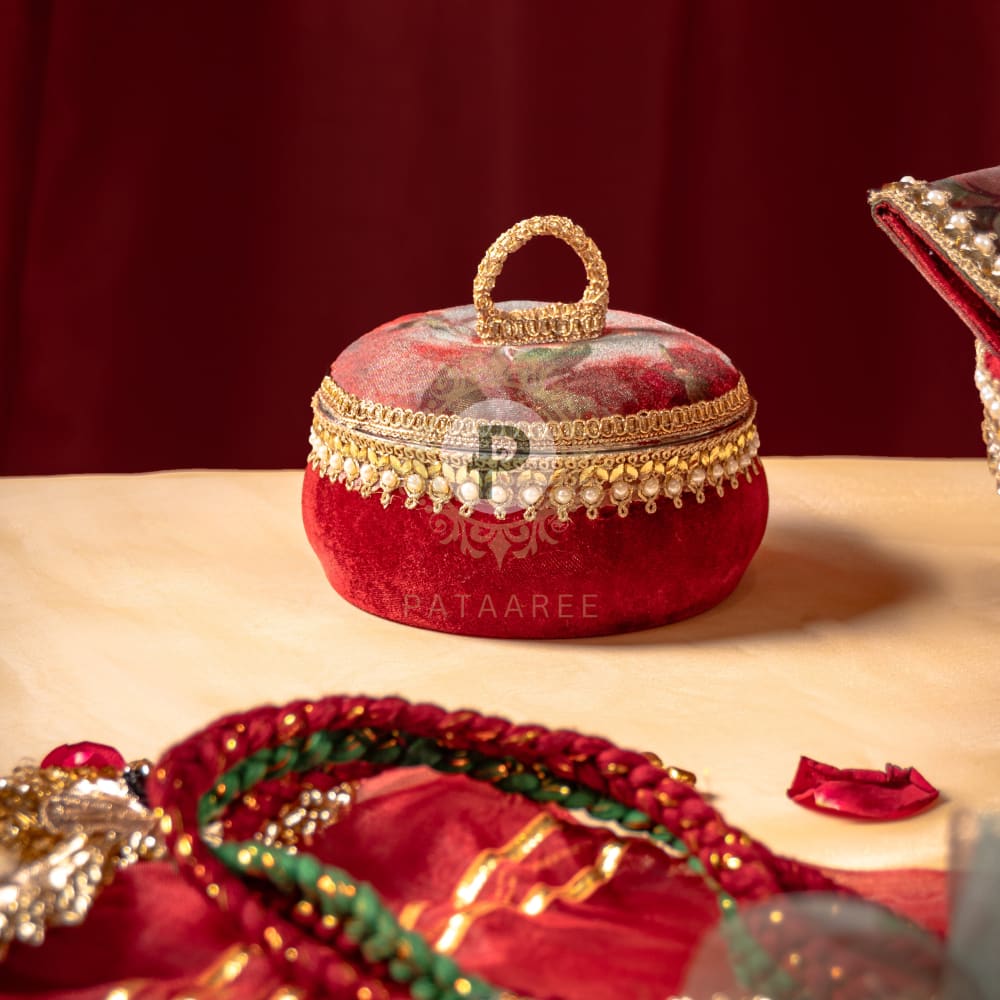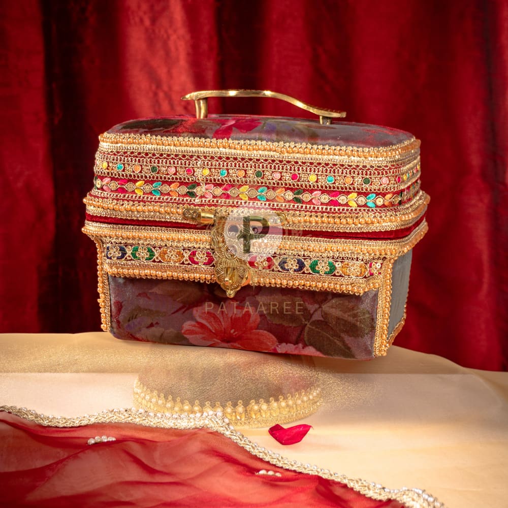 Material: Base Material steel and covered with velvet and floral tissue with matching gota work.