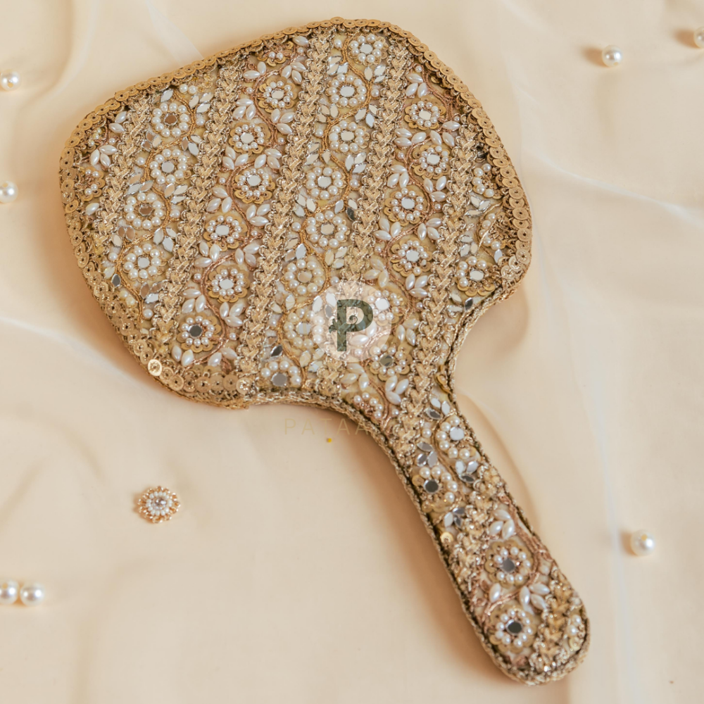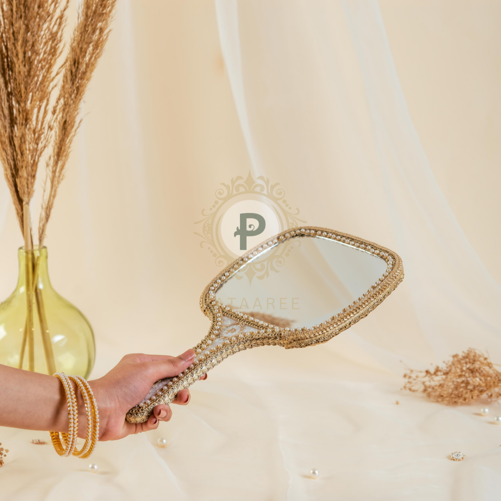 Slip it in your vanity case, give it as gifts or mehndi favours, or keep it as a traditional trousseau collectible - the Zehra collection hand mirror is an adorable piece of art you simply cannot resist.