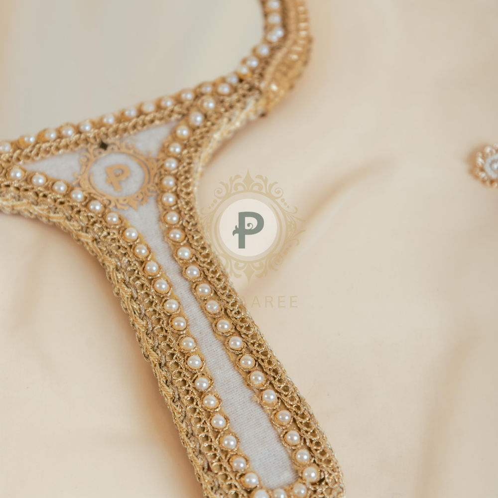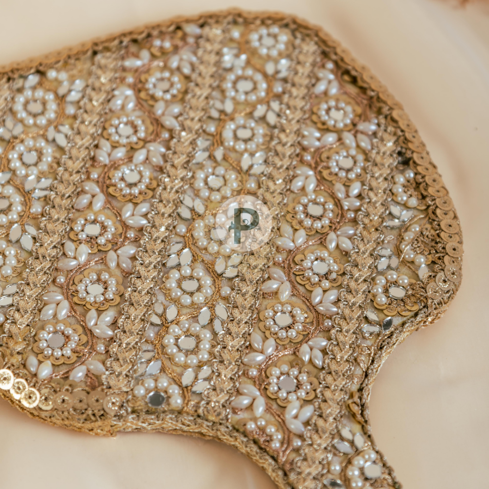 Material: Base covered with velvet fabric and embellished with pearls, mirror and beads