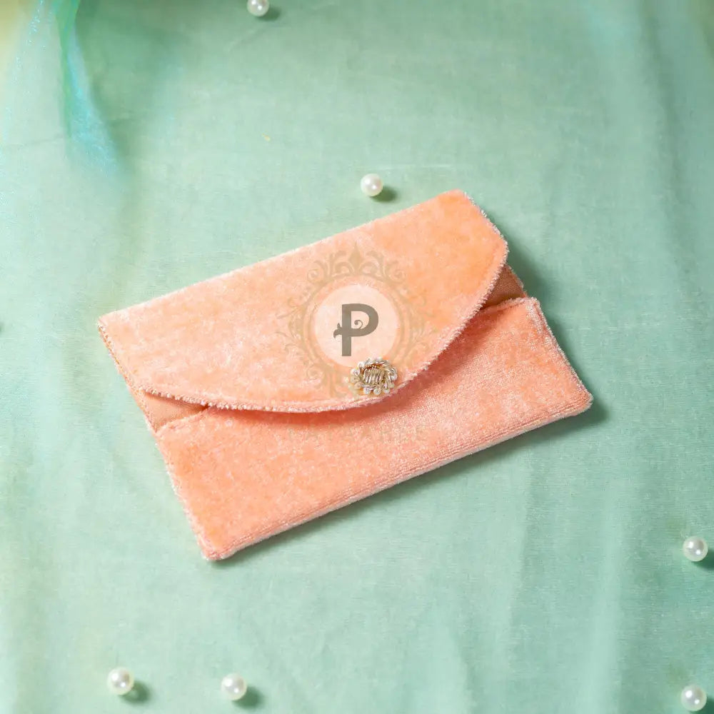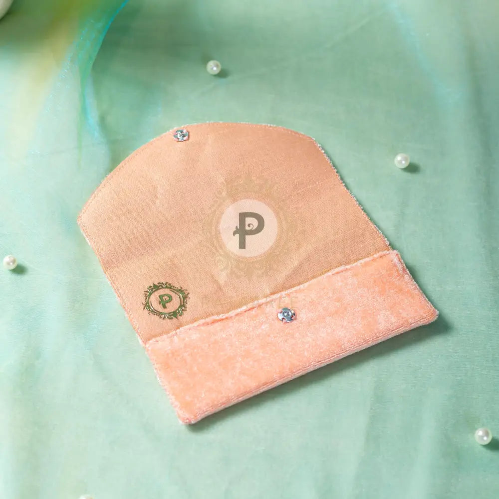 Introducing our peach velvet Bindi Cover, embellished with delicate patch detailing. Ideal for mehndi favors and wedding celebrations, this elegant accessory adds a sophisticated touch to your special occasions.