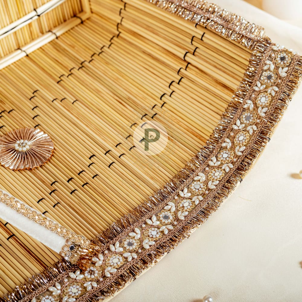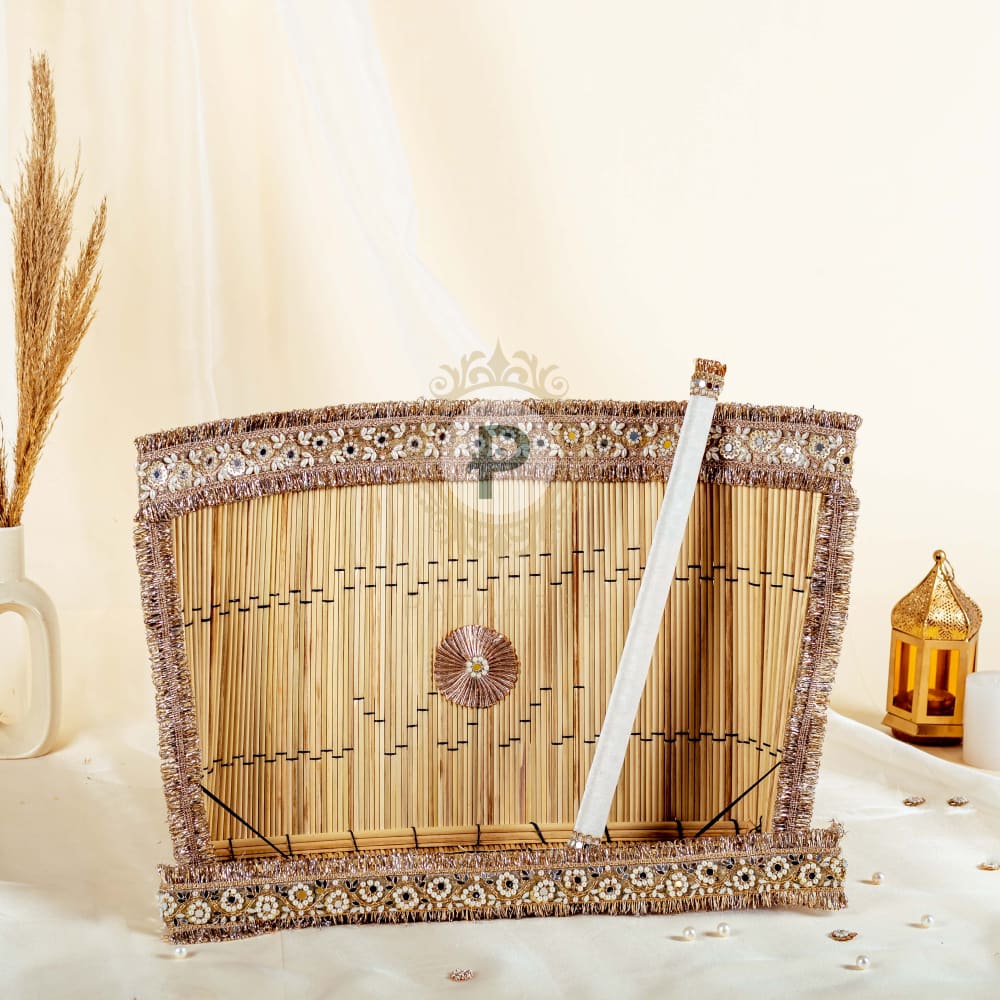 So how does one get to make some noise and wake up everyone to join in the festivities? With a chajj and a stick! There is no jaago without the playful beating of the chajj and the maternal and paternal sides of the bride/groom singing mischievous folk songs. Pick our Zehra collection chajj with pearls and baadla and a matching stick for the ‘shor-sharaba’!
