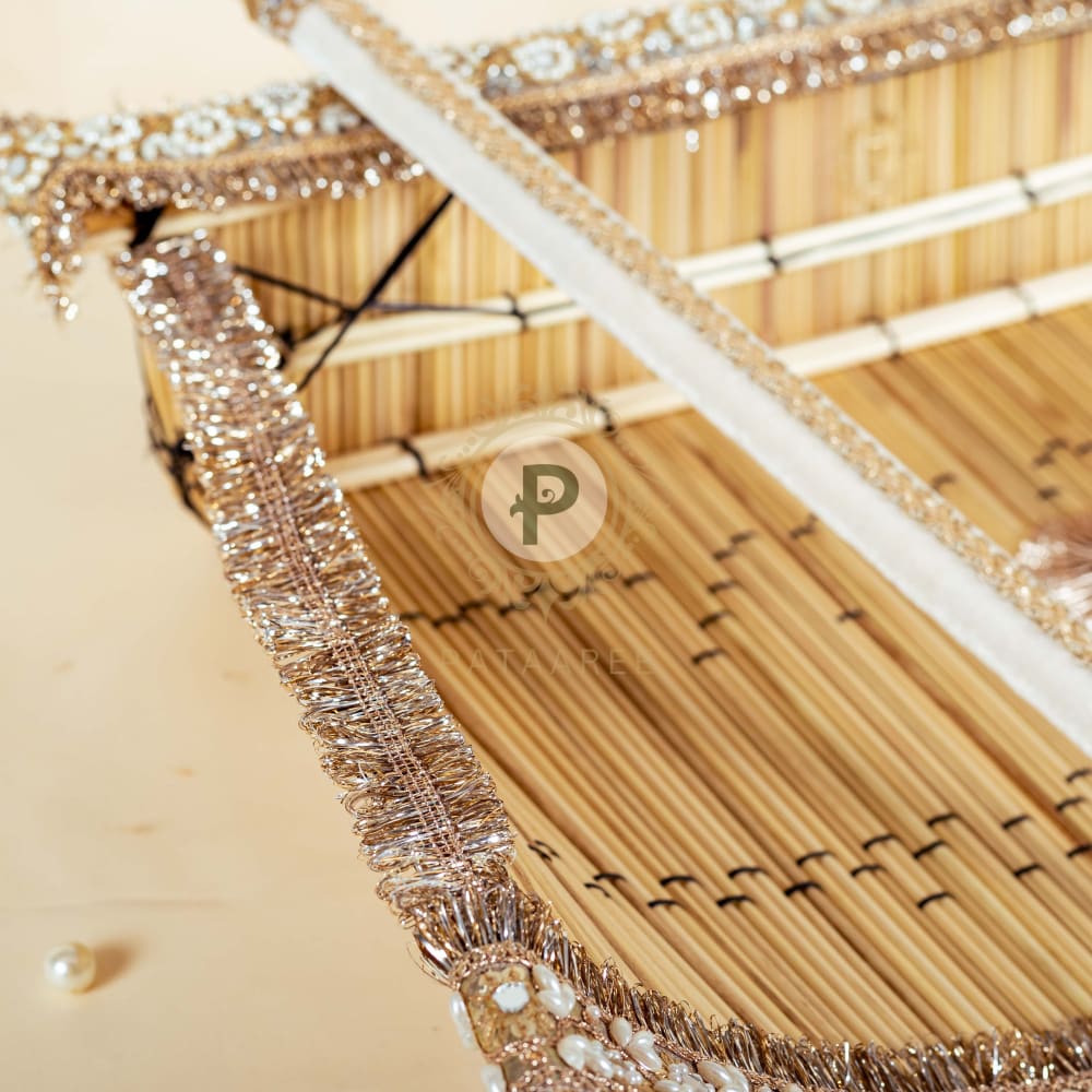 Material: Base Material bamboo with velvet fabric and embellished with pearls, mirror and beads.