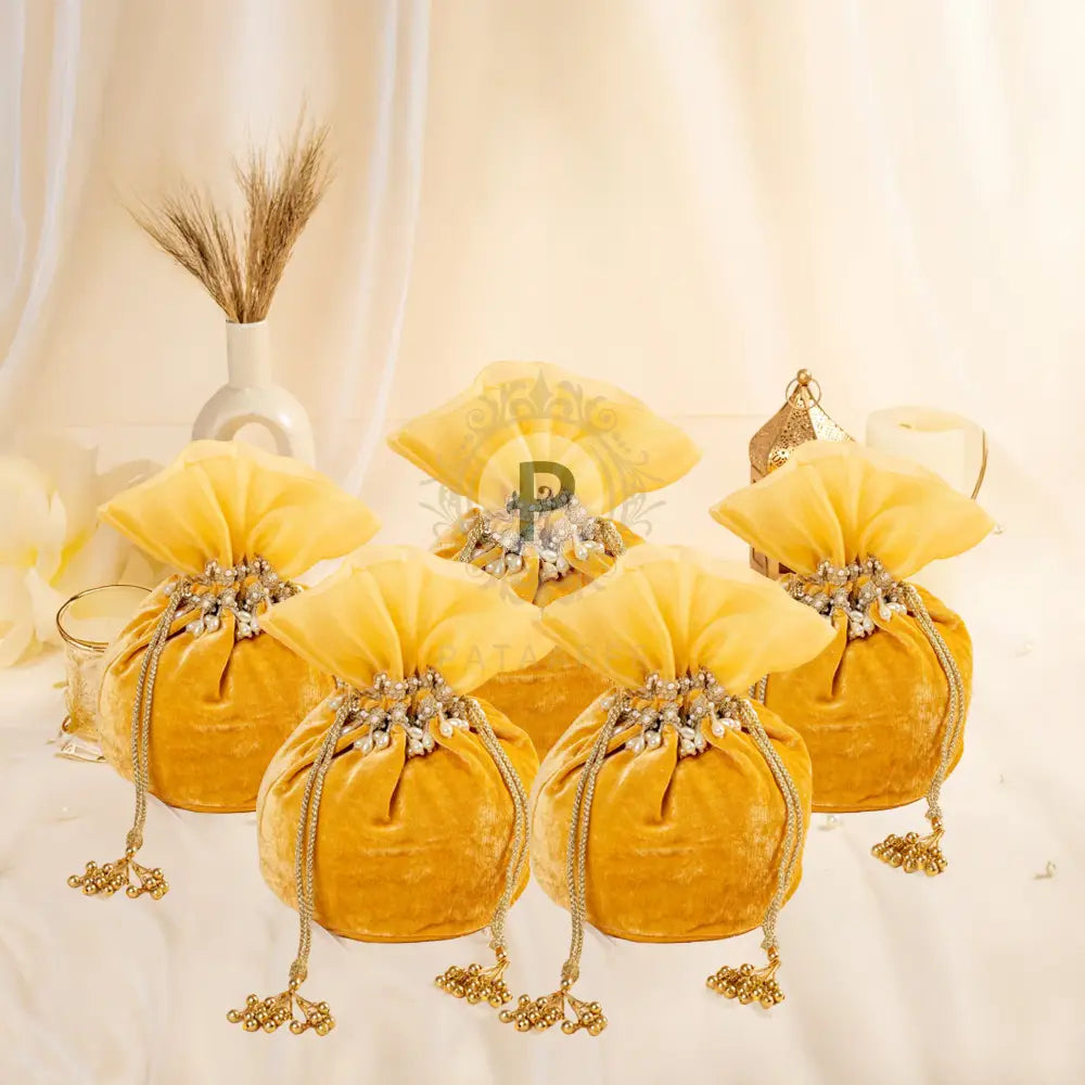 Gold Zehra Velvet Potli (1kg) – Set of 5