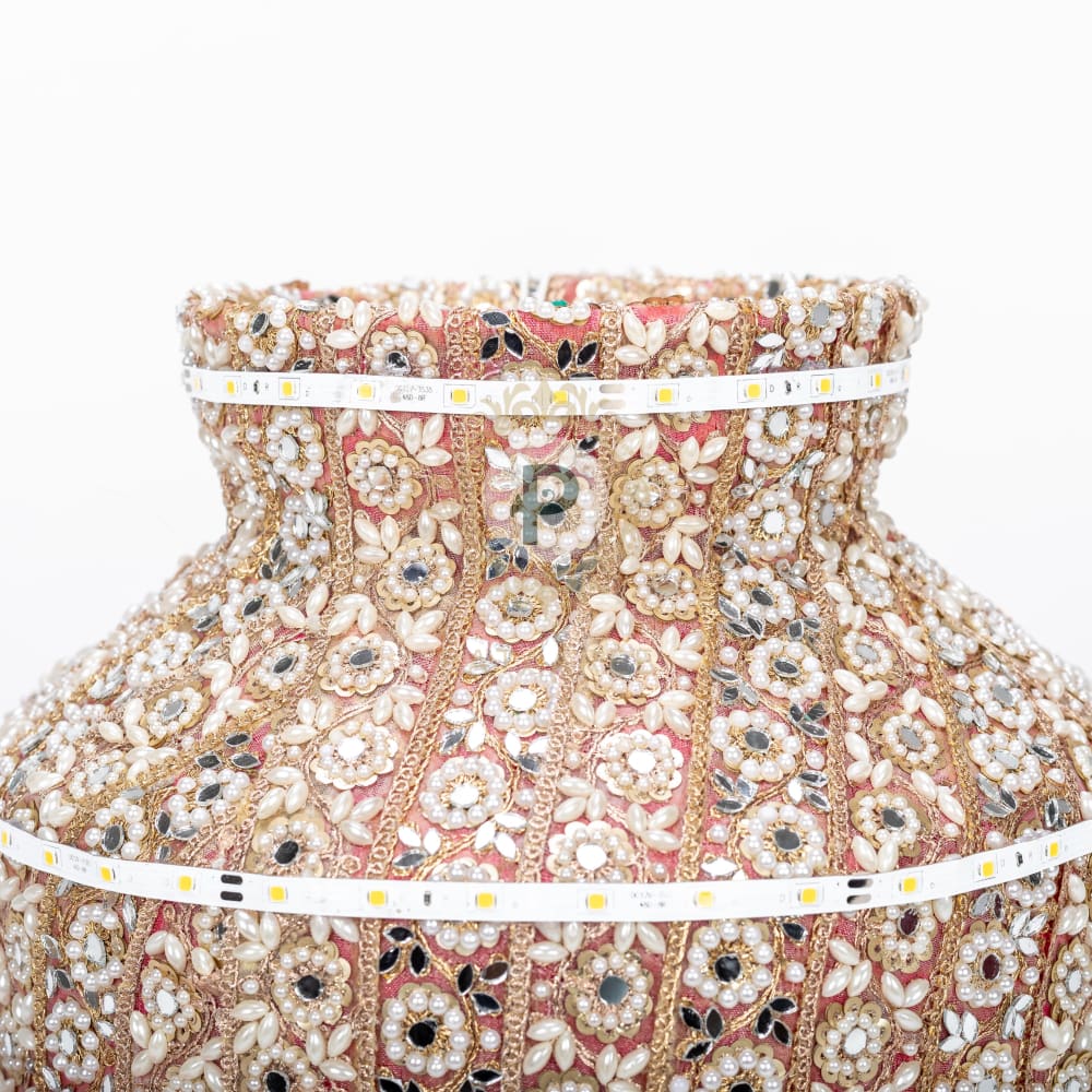 Jaago is pure celebration—and our Hot Pink Zehra Jaago Matka matches its energy. Wrapped in vibrant dabka, mirrors, and pearls, this bold beauty sparkles with LED lights to steal the show. Grab yours today and dance your heart out with this shining matka crowning your Jaago night!