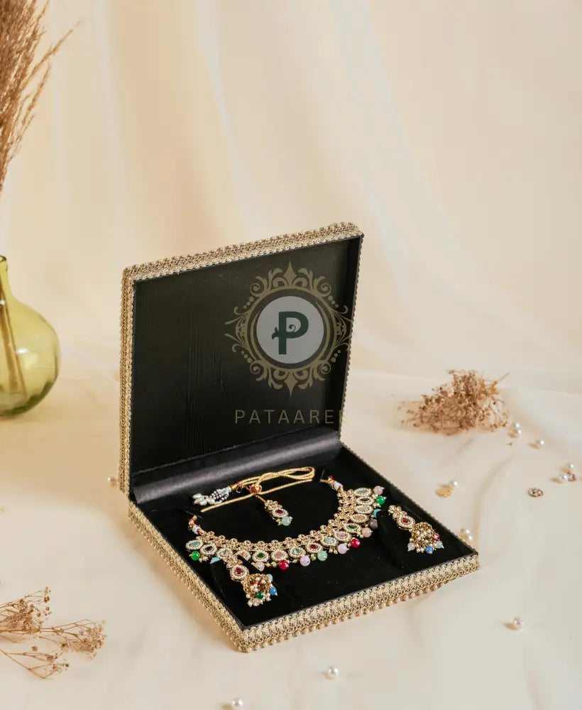 Looking for an elegant box without flashy jewellery store branding for your kitty sets? Choose our Zehra collection jewellery box in timeless Ivory—perfect for daaj-wari pieces, precious gifts for in-laws, or milni sets.