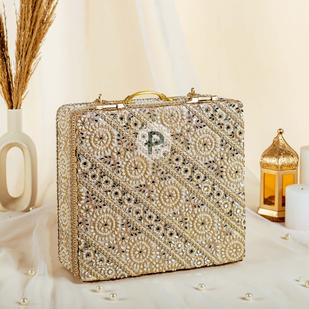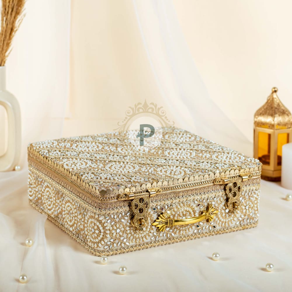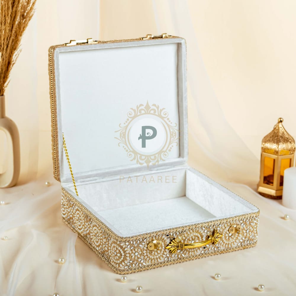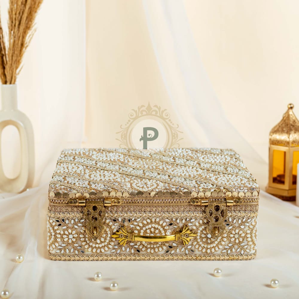 This compact little case is a stylish addition to the trousseau collection, and a headturning accessory for anyone in the wedding party - gift them, add to favor favourites or simply flaunt as a new bride, the Zehra mini trunk can carry your jewellery, personal items, make-up, even your iphone and ipad. Yes, it's a cool new must-have in your collection.