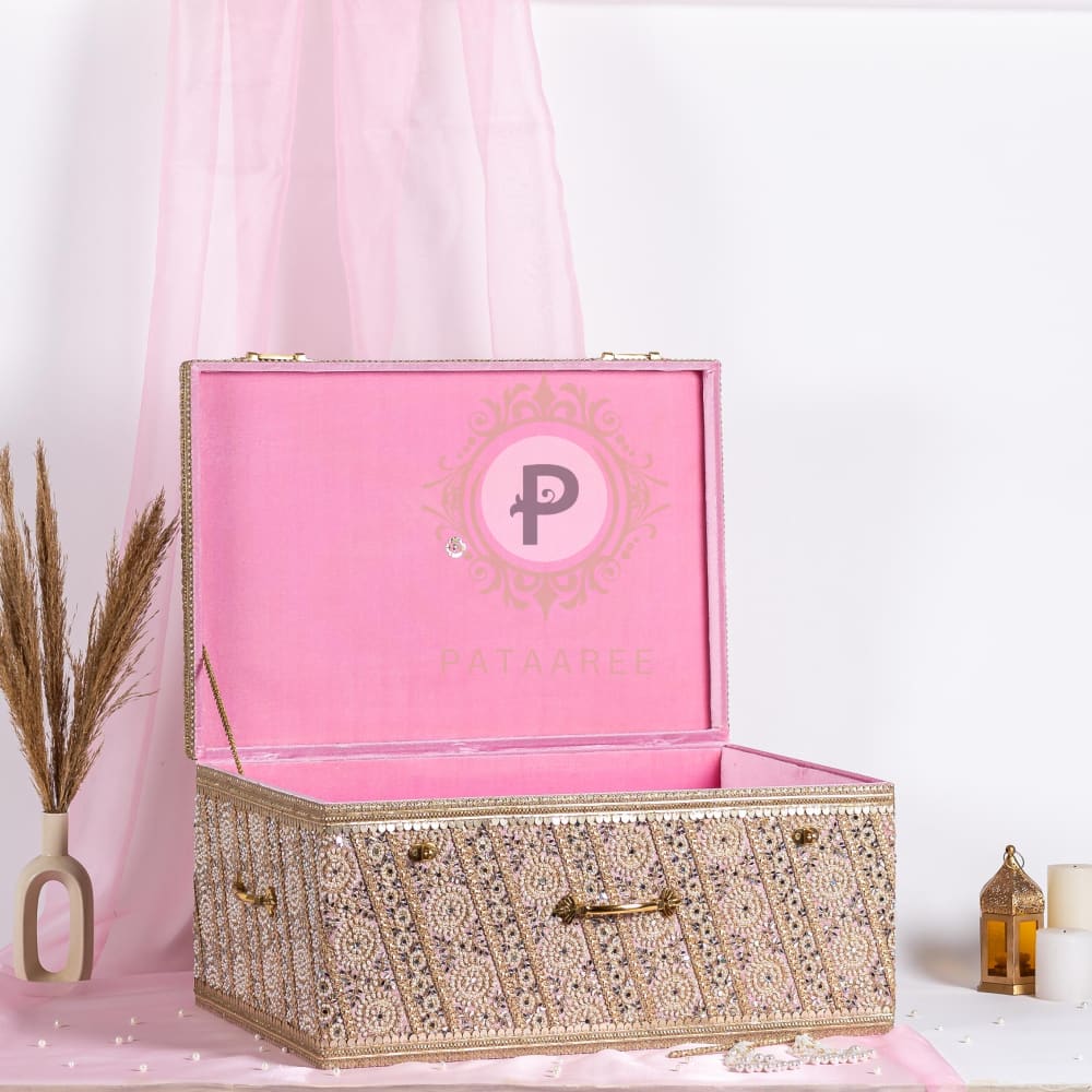 Zehra Pastel Pink Trousseau Trunk (Medium)