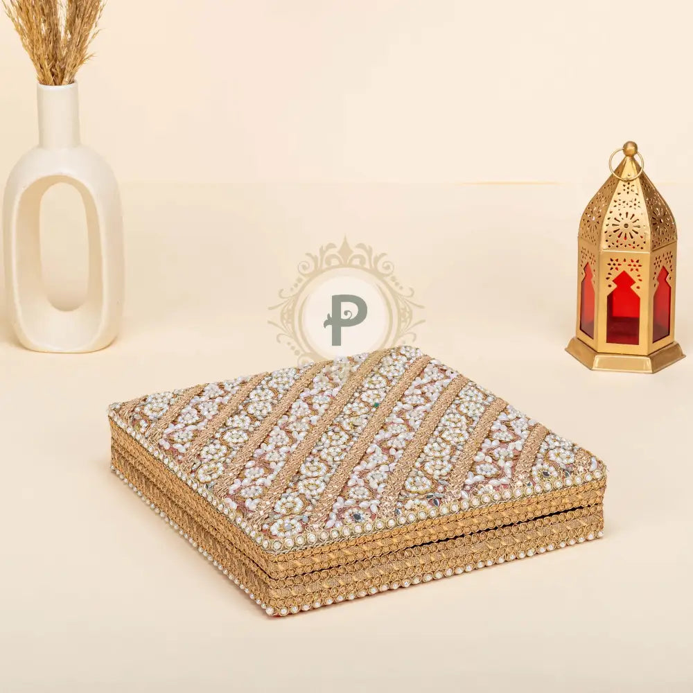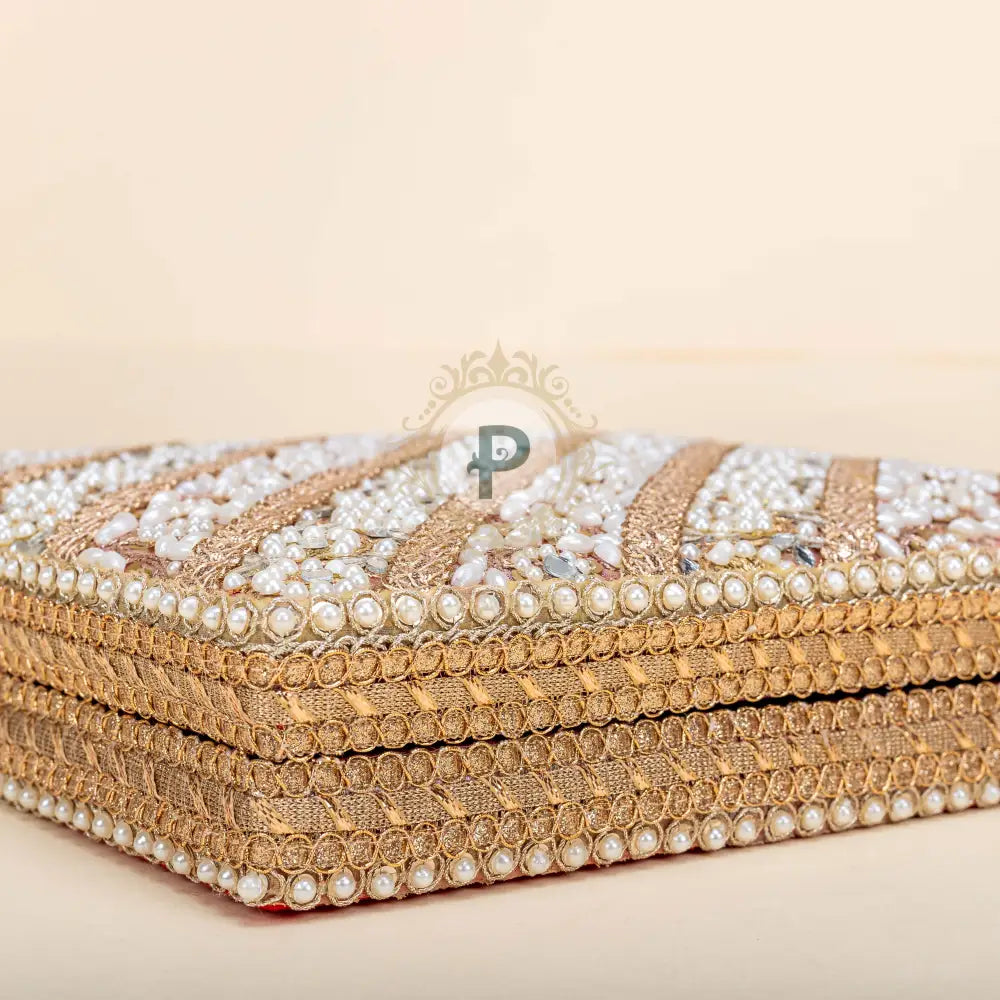 Looking for an elegant box without loud jewellery shop branding for your kitty sets? Choose our Zehra collection jewellery box in Red—perfect for storing your daaj-wari jewellery, luxe baubles for in-laws, and gifting sets for milnis.