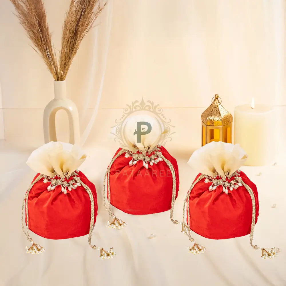 Red Zehra Velvet Potli (1kg) – Set of 3